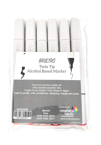 - Set of 6 Reds in a Blister Pouch. Highly compatible with Brustro Bleedproof Marker Papers 70 GSM