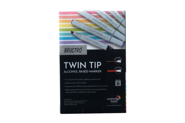 - Brustro Twin Tip Alcohol Based Marker Set of 6 (Skin) in a Blister Pouch. Highly compatible with Brustro Bleedproof Marker Papers 70 GSM