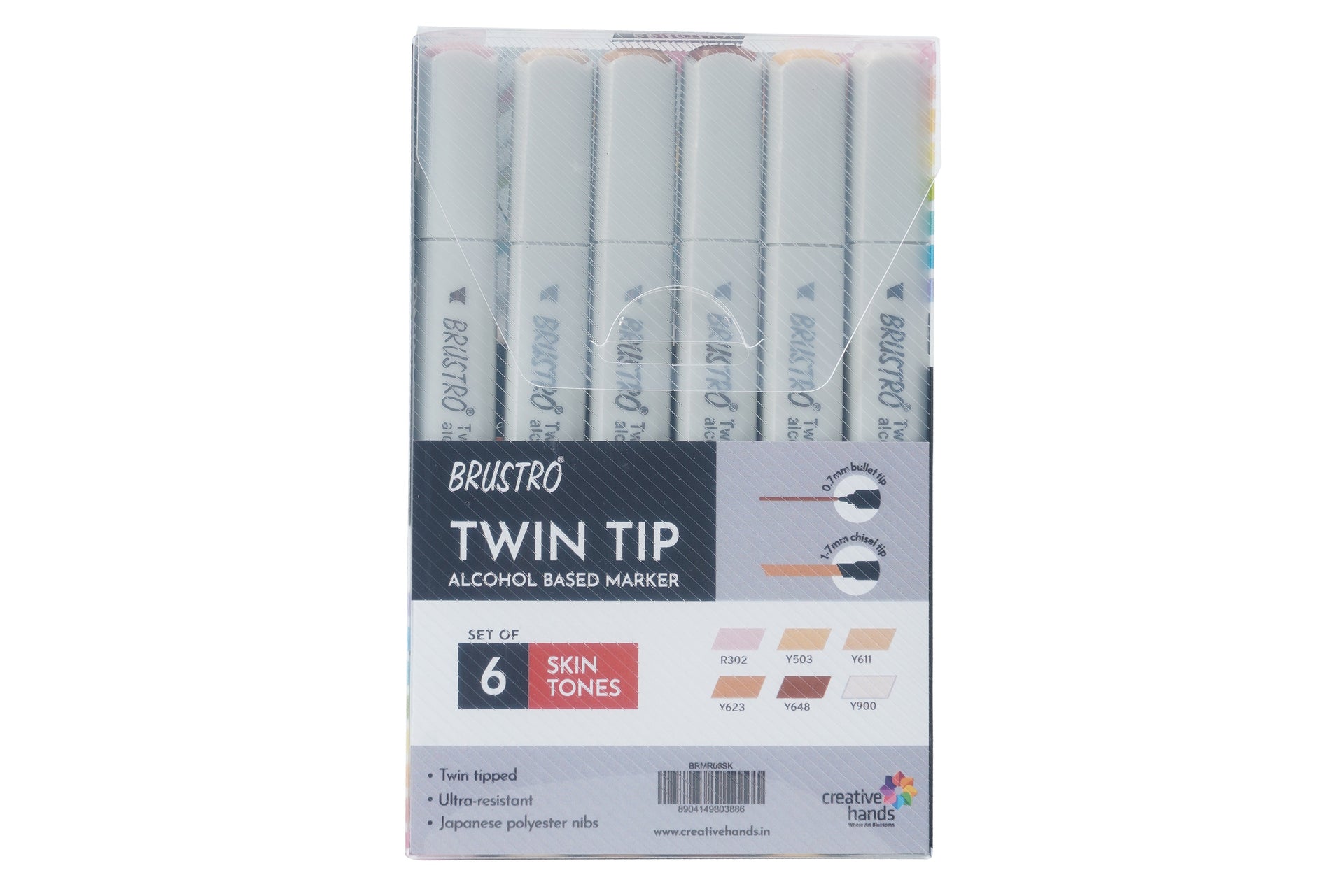- BRUSTRO Twin Tip Alcohol Based Marker Set of 6 (Skin) in Crossline PP See Through Box