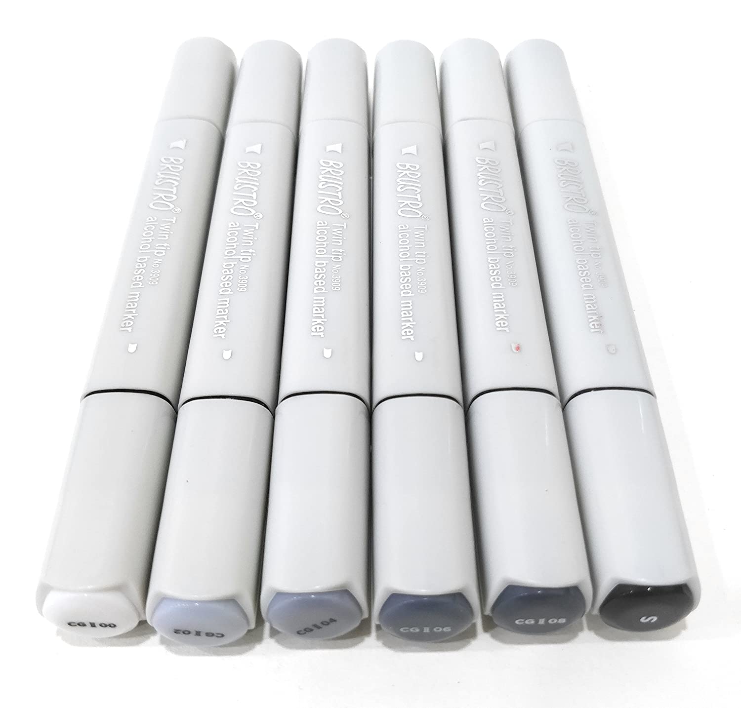 - Set of 6 B Cool Grey in a Blister Pouch. Highly compatible with Brustro Bleedproof Marker Papers 70 GSM