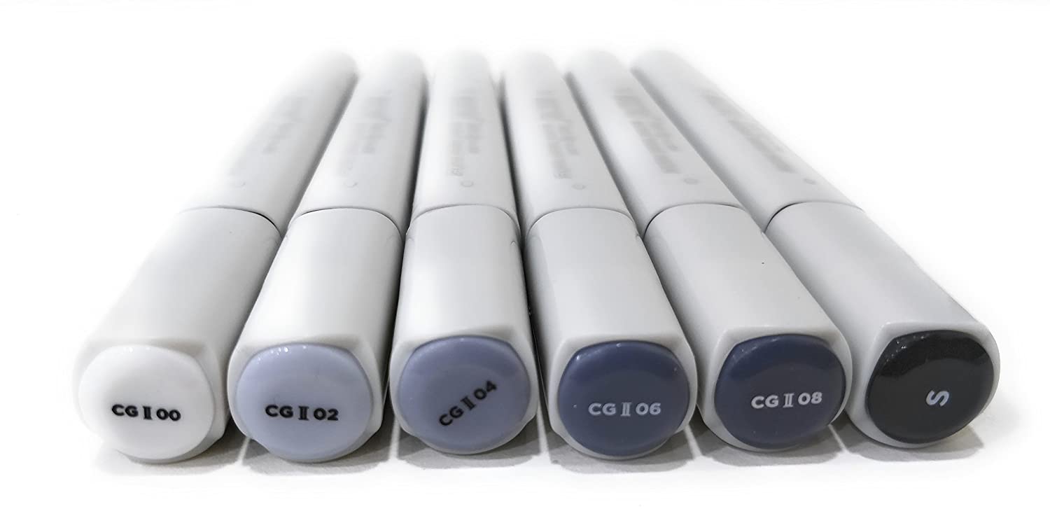 - Shades (Incldues: Cool Grey ll 0, Cool Grey ll 2, Cool Grey ll 4, Cool Grey ll 6, Cool Grey ll 8 & Black) in a Blister Pouch.Â