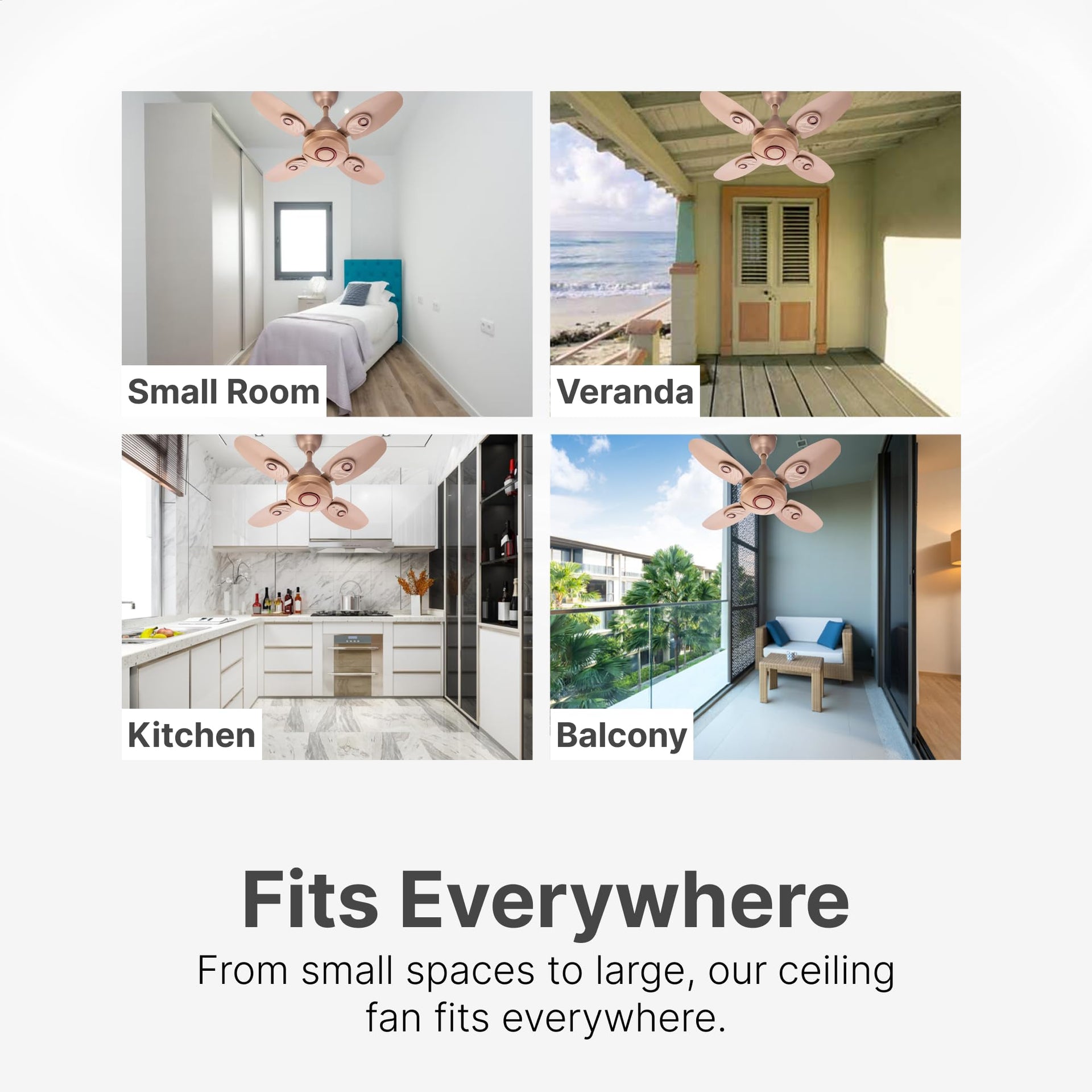 Candes Nexo 600 mm /24 inch High Speed Ceiling Fan | BEE Star Rated, High Air Delivery & Energy Saving | Small Fan for Kitchen, Balcony & Small Room | 1+1 Year Warranty | Golden