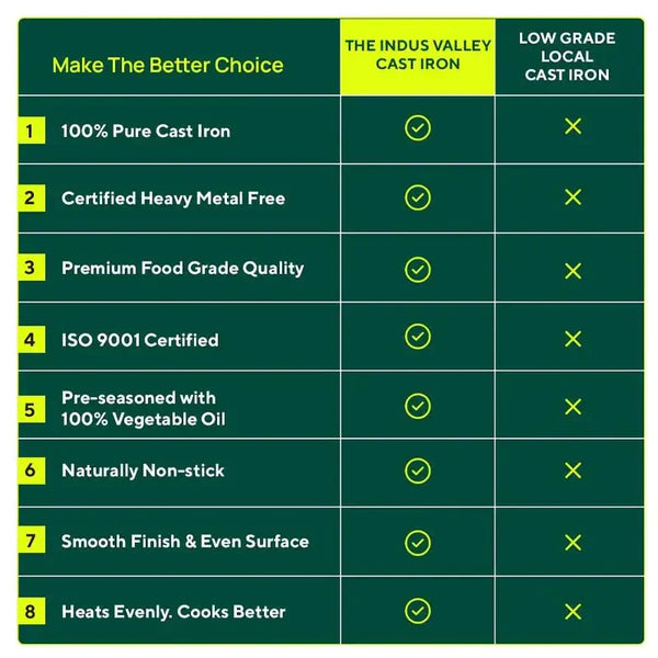 Pre-seasoned with 100% vegetable oil, the cast iron tawa gets a naturally non-stick surface. Giving you a restaurant-like taste and crispy dosa for sure!