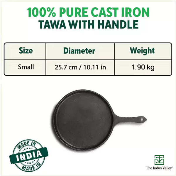 CASTrong Cast Iron Tawa with Handle, Pre-seasoned, 100% Pure, Toxin-free, Induction, 25.7cm, 2kg