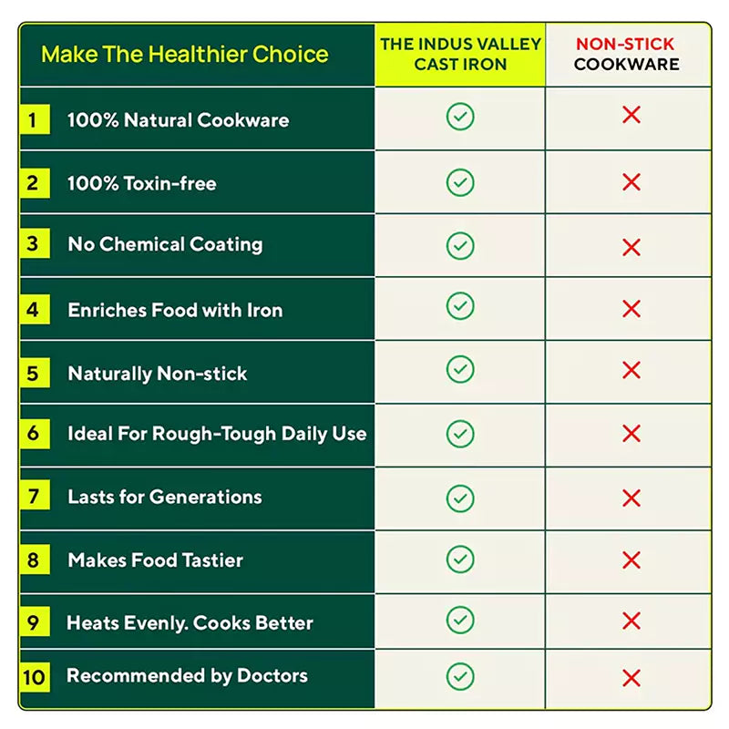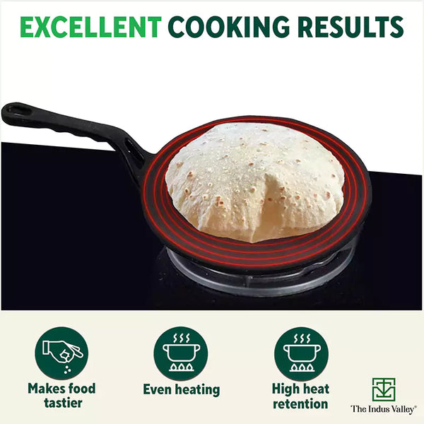 💰GREAT INVESTMENT: Cast iron cookware lasts for generations. Why waste money on a non-stick tawa every 2 years, when you can have a long lasting cast iron tawa?