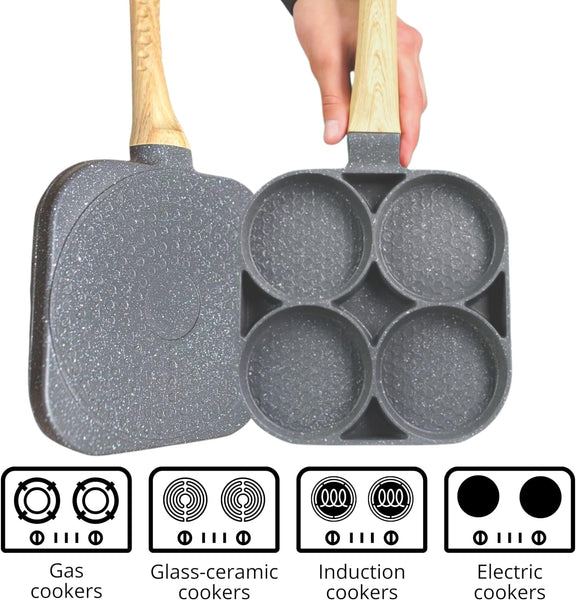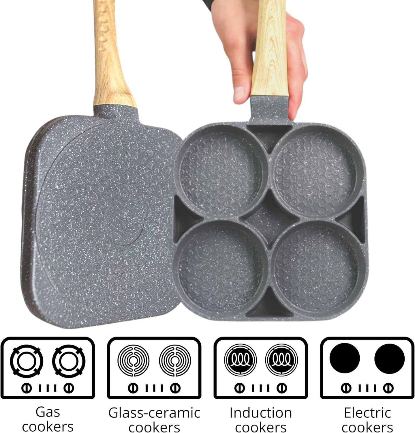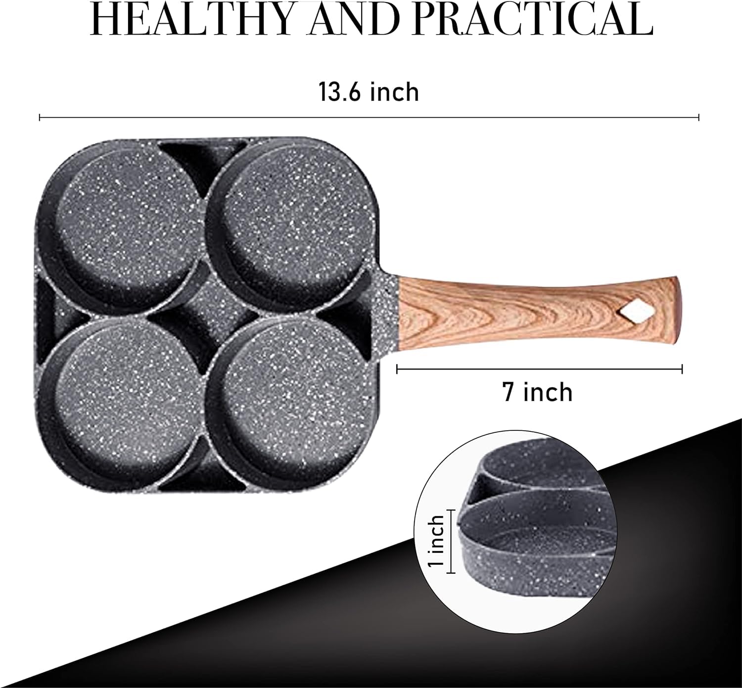 Cazuela 4 Cups Egg Pan Omelette Pan Frying Pan Egg Frying Pan 4 Cup Crepe Pan Granite Egg Cooker Breakfast Pancakes Pan Suitable for Gas Stove & Induction Cookware (Wood Grain Handle)