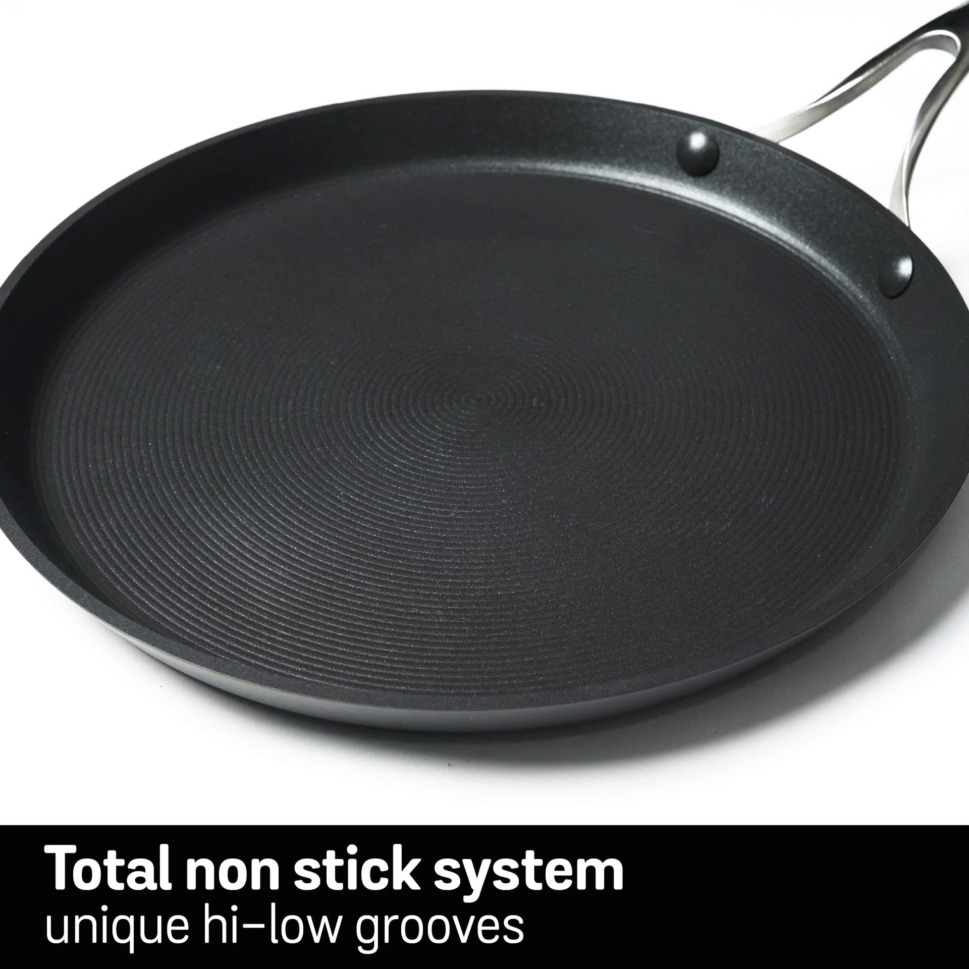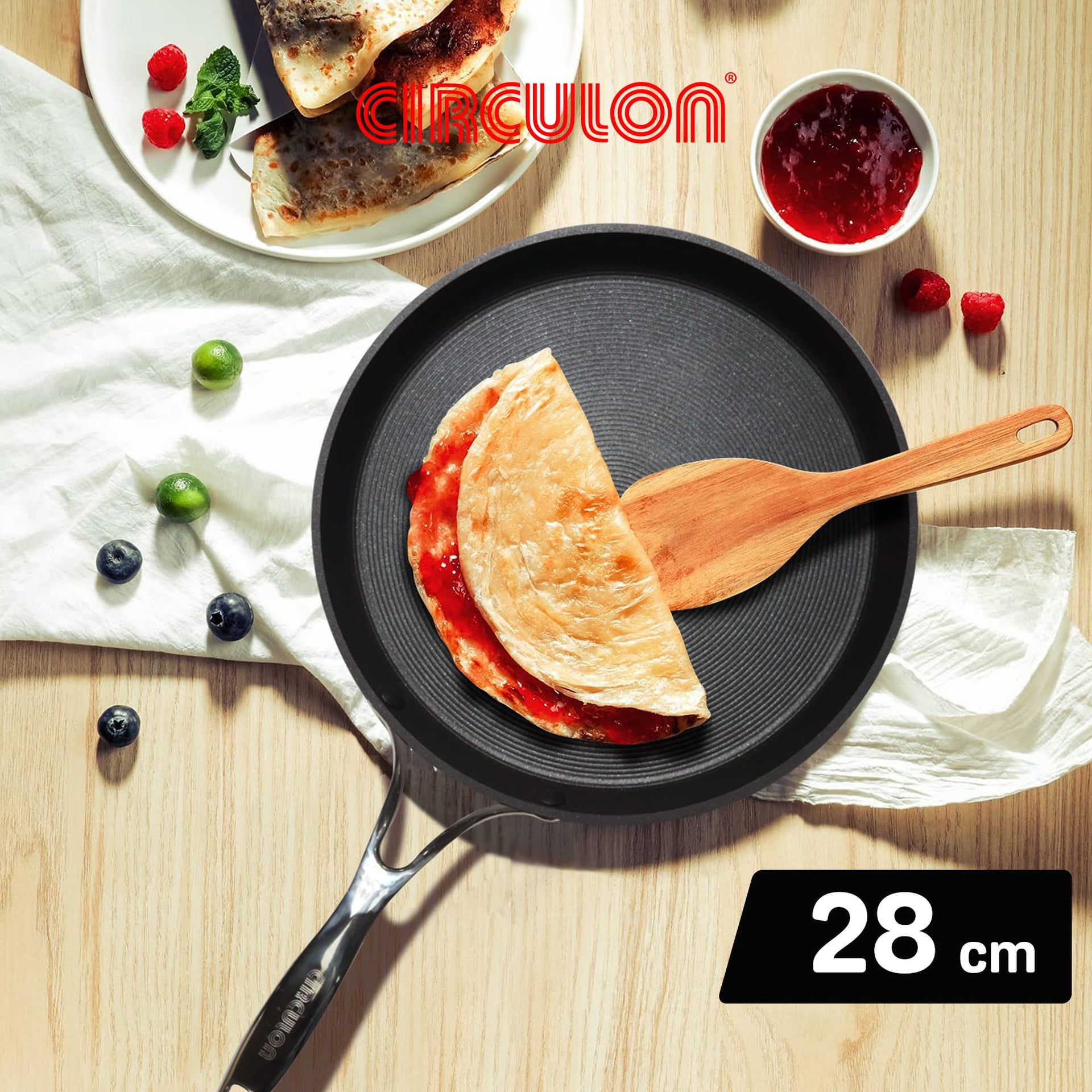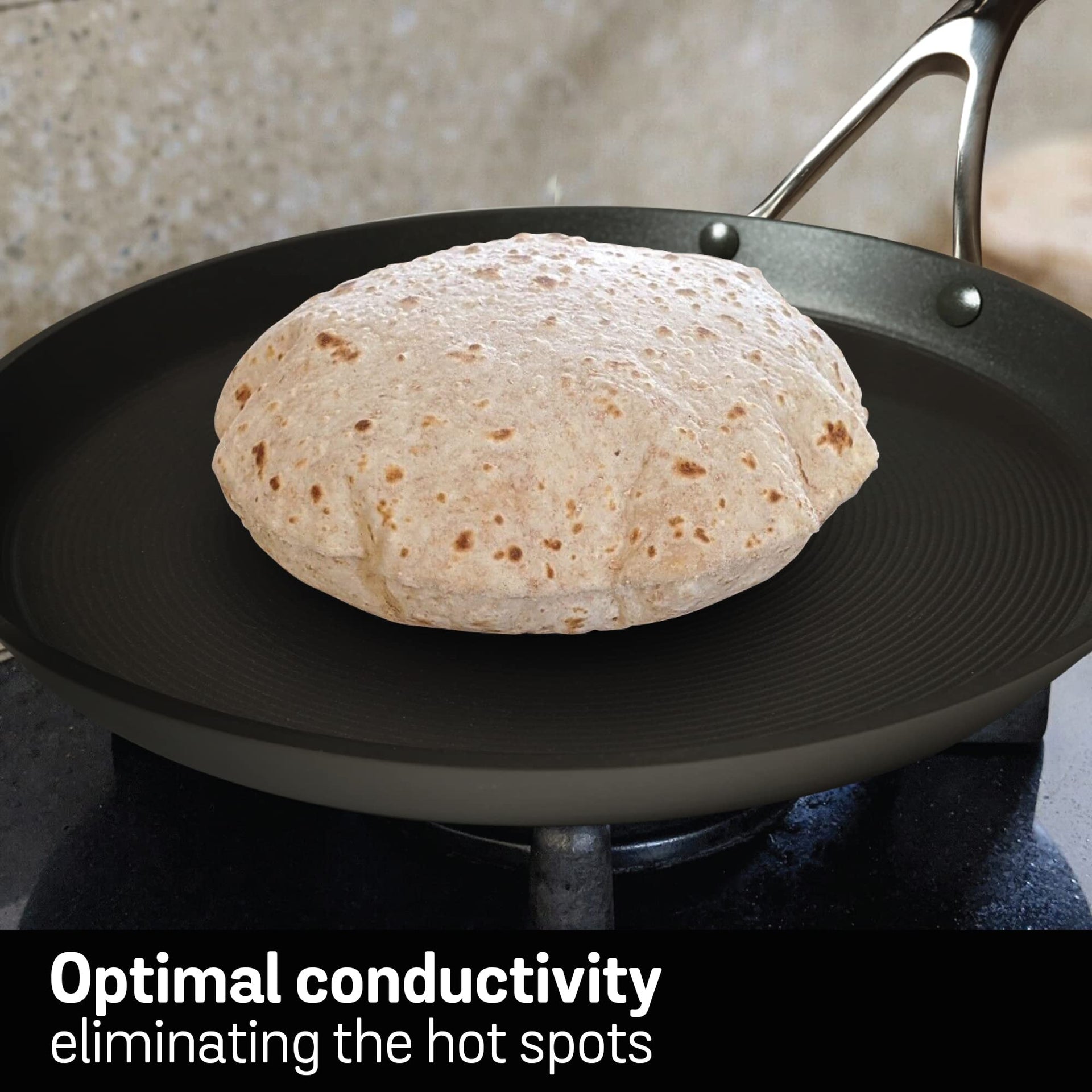 Circulon Hard Anodised Non Stick Aluminium Flat Dosa Tawa | Dosa Pan NonStick | Tawa for Roti | Non Stick Tawa Induction Base | Dosa Tawa Big Size, 28 cm, Black