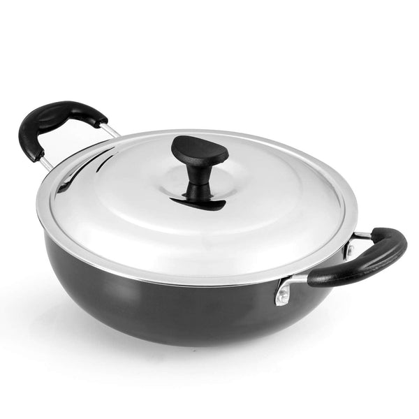 Classy Hard Anodised Kadhai with Lid, 2.5 Litres, Gas Stove Compatible