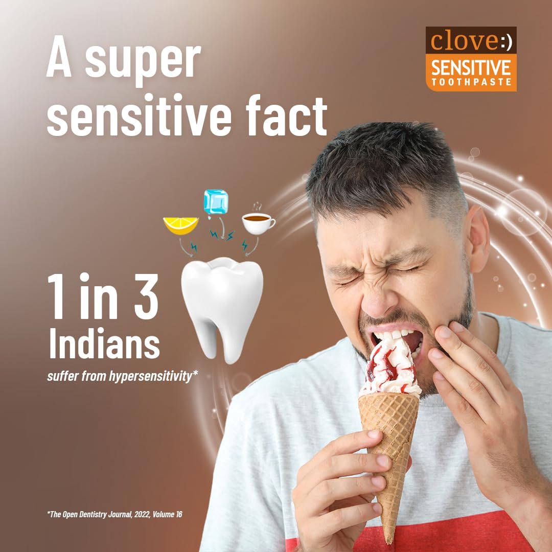 Clove Sensitive Toothpaste | reduce Senstivity | Dual Action toothpaste For Sensitivty & Bad Breath | Strengthens Enamel | Triclosan Free | Paraben Free | Peroxide free | Mint, Pack of 1 (100g)