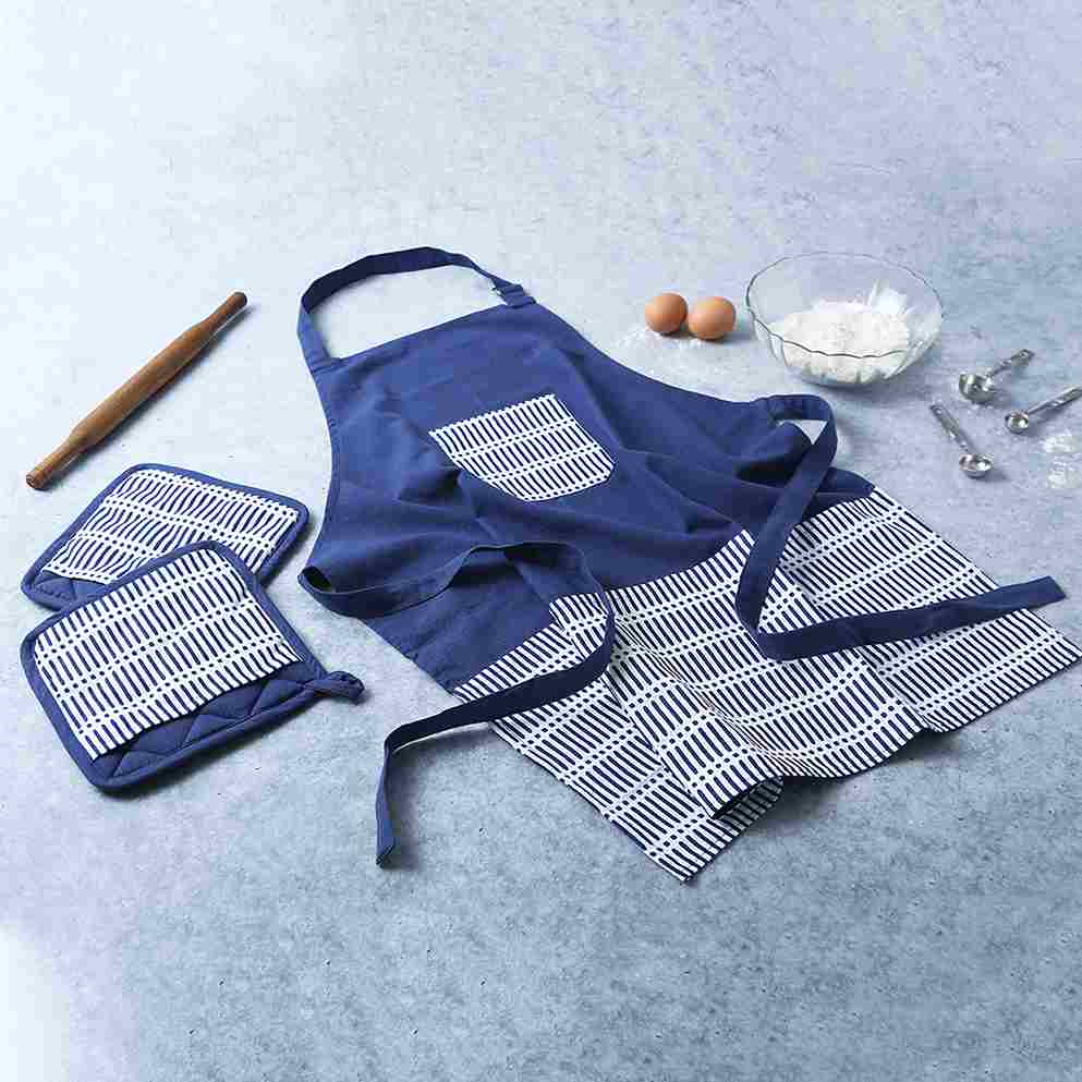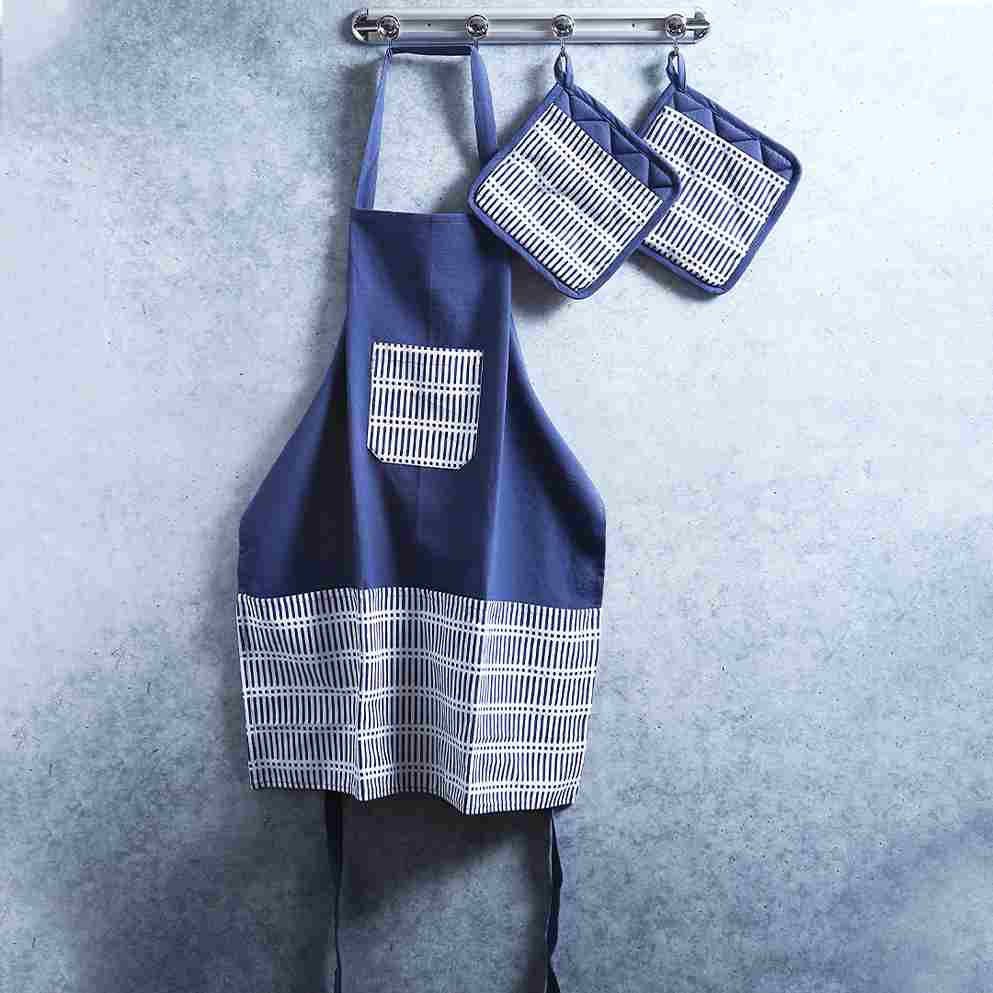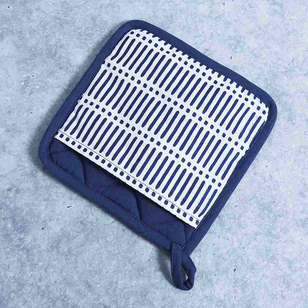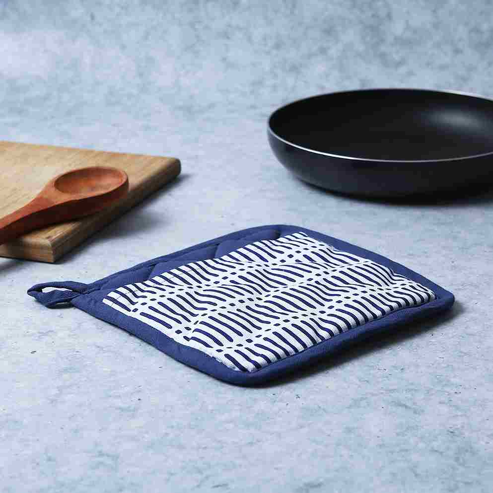 Crafted to offer utmost safety, this pot holder set from the Como range comes with superior heat insulation to offer you enhanced protection against burns. Made out of fine fabric, this one comes in handy especially while serving and holding hot dishes. Add a style statement and bring a contemporary style to your kitchen with this white & blue printed pot holder. It provides superior grip and allows you to handle hot utensils with flexibility and ease.