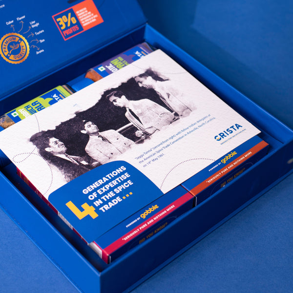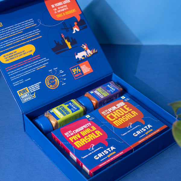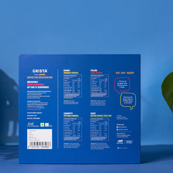 CRISTA Seasonings Gift Boxes are a series of six unique and modern theme oriented gift boxes that consist of a variety of natural, authentic and flavourful Indian and International Seasonings. Baby Showers, Birth Annoucements, Birthdays, Anniversaries, Housewarmings and Festive Occasions like Diwali, Rakshabandhan and Friendship Day are some of the important occasions for which a CRISTA Seasonings Gift Box has been used as the perfect gift to show your appreciation and love towards that special recipient. The Passionately Italian Seasonings Gift Box consists of a modern design, premium packaging and five complex and authentic seasonings and spices that add loads of flavour to any Italian appetizer or entree. Try the earthy yet complex Woody Oregano Seasoning or herb infused Italian Pizza Seasoning for your appetizers or then the very flavourful and delicious Classic Italian Seasoning or Roman Cacio e Pepe Seasoning for pastas. Top of your dish with a judicious use of our signature Smoked Paprika Powder that generates a bit of heat with a lovely smoky essence. The gift box has a product card and note from the 4th generation Founder. Two of the products have a tech enabled QR code offering delectable recipes. CRISTA has pledged 3% of all profits towards various initiatives that empower the families of spice farmers in India.