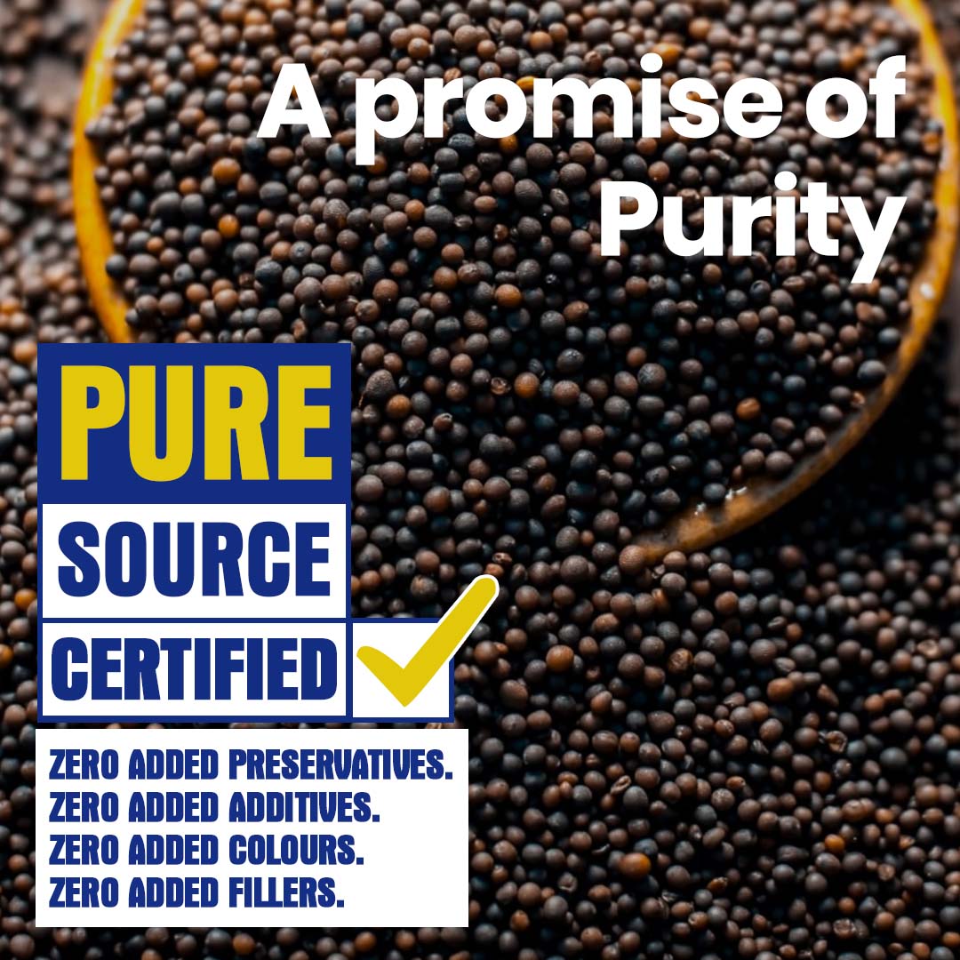 Hey! Its me Mustard. Proud of: My pungent and bitter taste. Premium quality, natural, dry and aromatic Mustard Seed is sourced from the farms of Bharatpur, Rajasthan. The spice is then transported to the factory where it is graded and processed. CRISTA Mustard is sortex grade (implies 99.6% purity). Mustard is small in size.