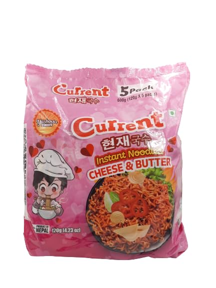 Indulge in the savory flavors of Nepal with Current Noodles Cheese & Butter Instant Soup Noodles. Made with real cheese and butter, this pack of five noodles offers a deliciously creamy taste. The veggie soup noodles provide a nutritious twist to your quick and easy meal. Imported from Nepal, experience authentic flavors in every bite.