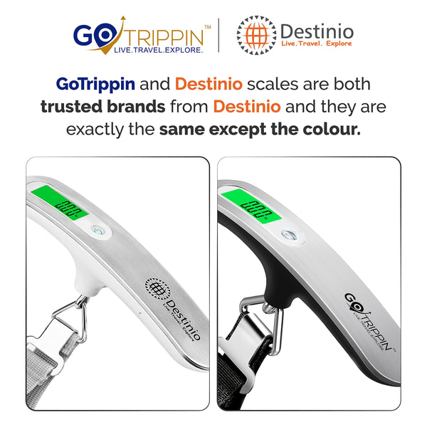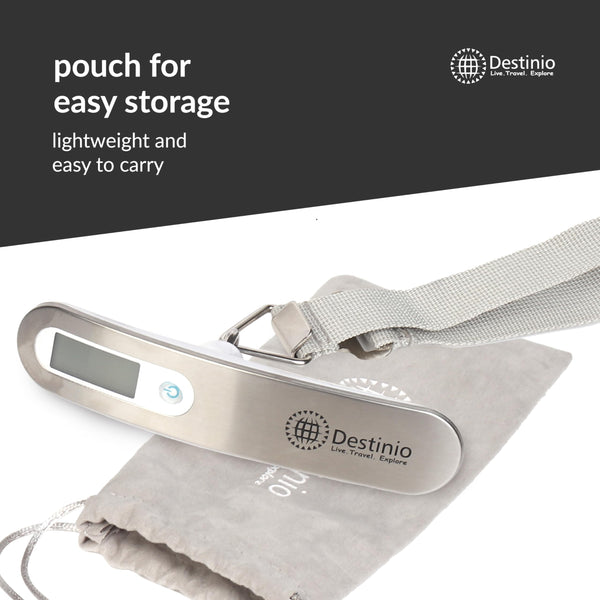 Destinio Metal Luggage Weighing Scale for Flights,Travel, Home, Shop, Gas Cylinder; Portable with 50 kg weight capacity, Hanging Weight Machine for Bags and Baggage (Steel_Destinio-Scale)