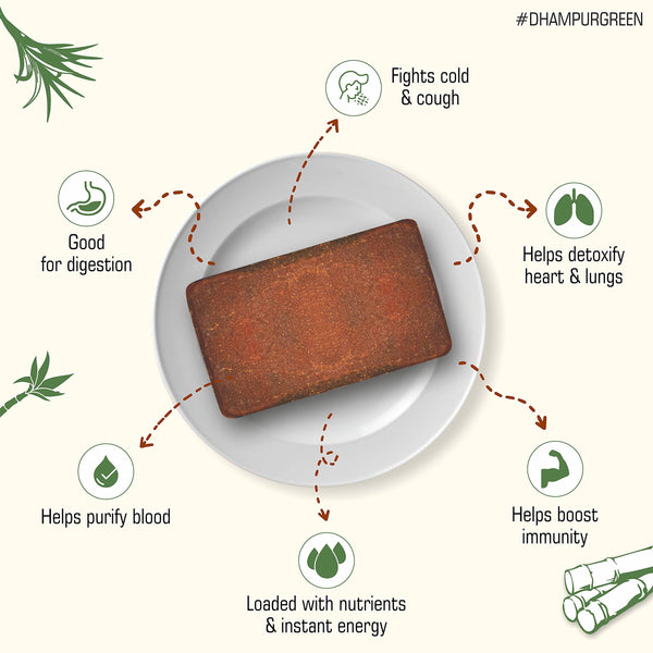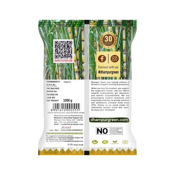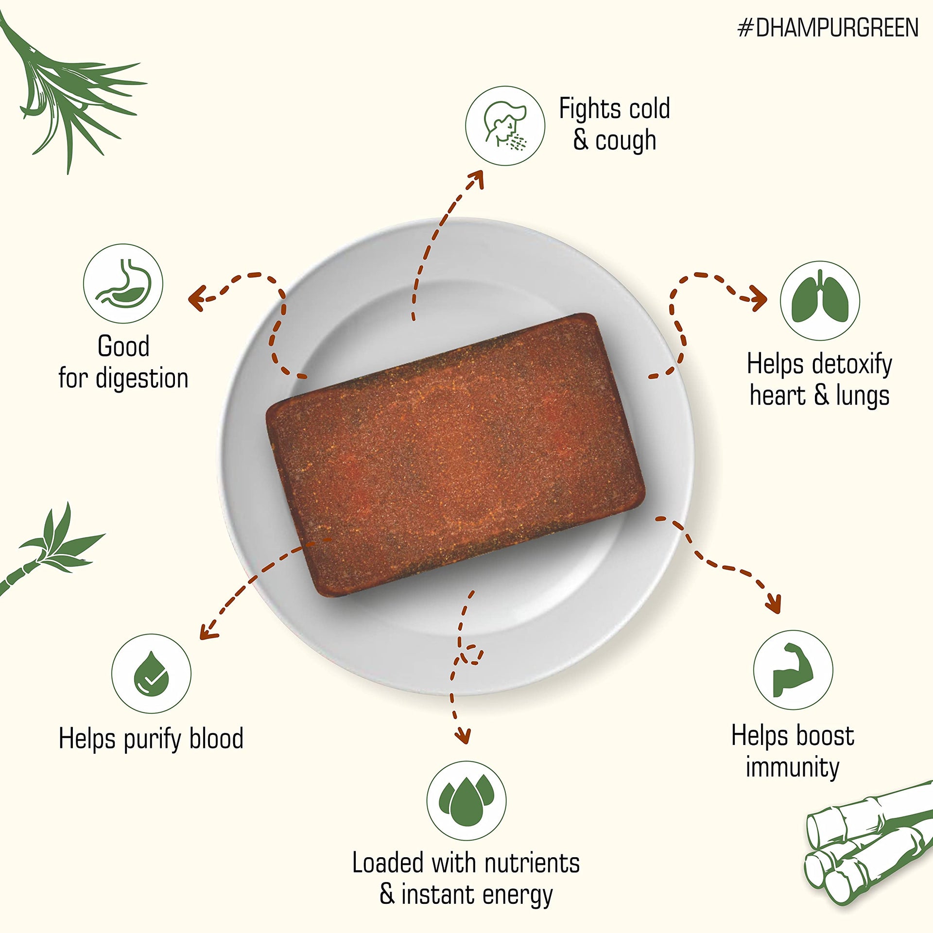 DHAMPURGREEN Vacuum Packed Jaggery, 1Kg | Jaggery Whole, Jaggery | No Colour, No Preservatives, Chemical Free Sulphurless