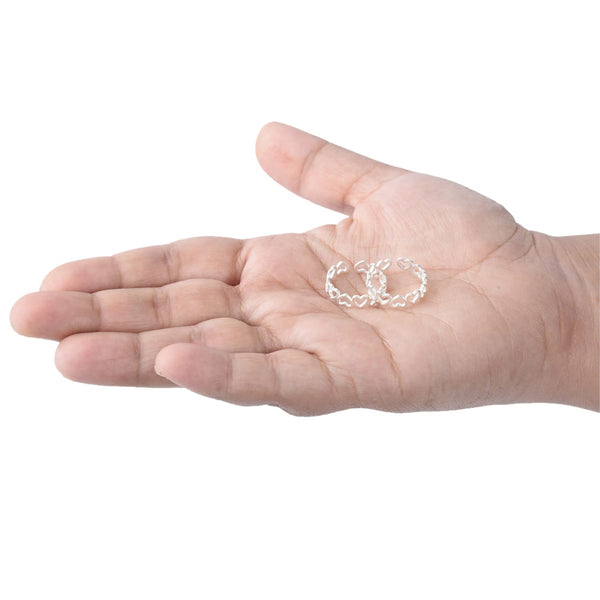 Enjoy accessorizing with these awe-inspiring toe rings from DHRUVS COLLECTION. It is a set of 2 and is made in 925 sterling silver. Back open hoops are used to wear these rings so that they can be removed easily. The ring has beautiful scroll worked in flower design for a youthful aura. On the simplest of footwear, these smart toe rings will make your feet stand out. These are flexible toe rings, fit for most sizes. Buy for your self or can give this toe rings to someone special for birthdays, anniversaries, Valentine's Day or any special day. Do not wear toe rings while showering, sleeping or wearing socks and tennis shoes. Not removing the ring could result in damage to the jewelry. Every effort has been made to accurately reproduce the look of this product but there might be slight variations in the color and size of the actual product received due to on-screen representation.