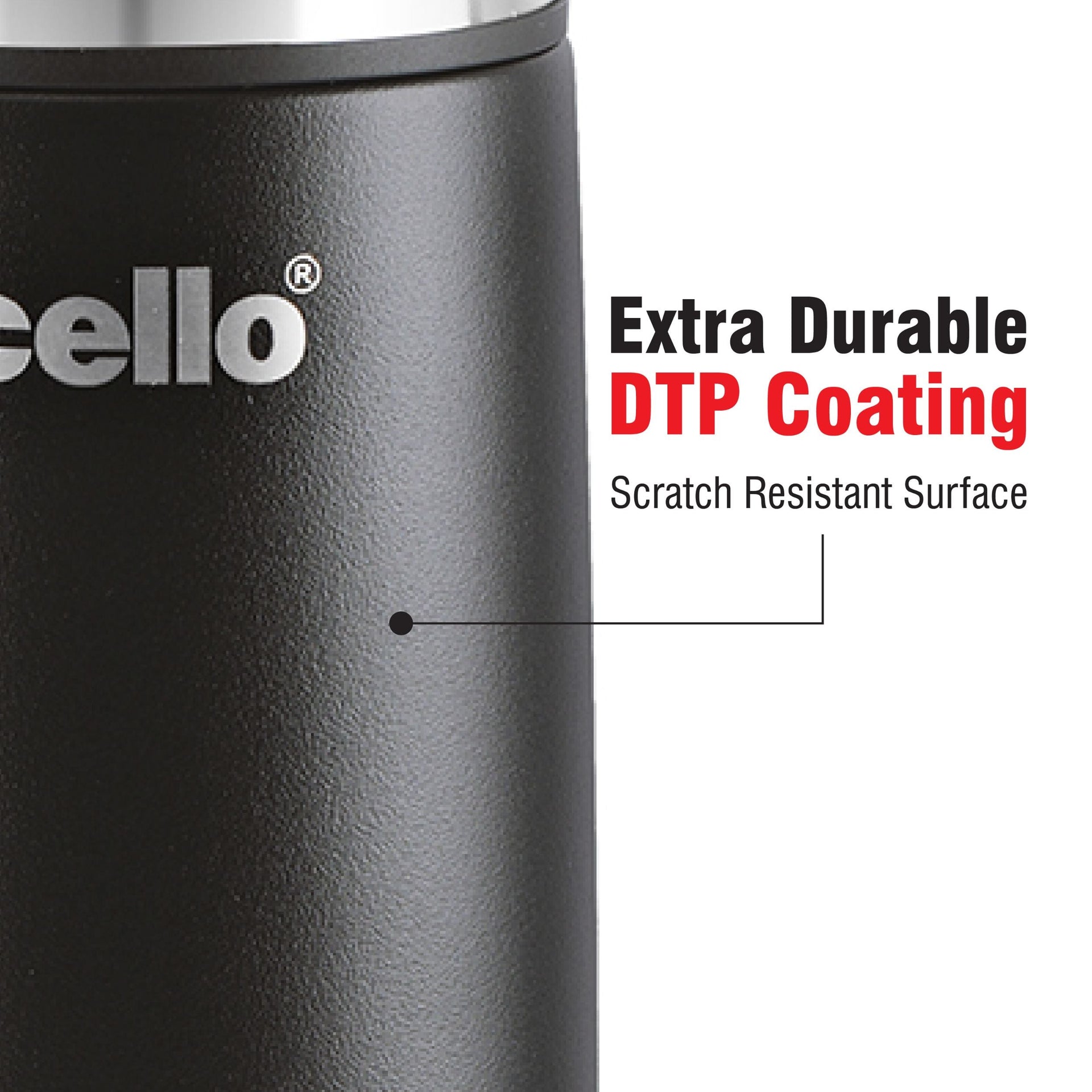 Introducing the Duro Flip Flask, a 750ml Vacusteel Water Bottle with a Thermal Jacket, designed for the adventurous spirit in you. Whether you're heading out on treks, hikes, cycling, going to the gym, school, or the office, this flask is your reliable companion. Crafted with advanced DTP coating, its vibrant colors won't fade or scratch with everyday use, ensuring it looks brand new even with wear and tear. This double-wall insulated water bottle keeps hot liquids piping hot and cold beverages ice cold. The unique DTP coating enhances its appearance, and Vacusteel technology with a copper-coated interior ensures prolonged temperature retention. It's leak-proof, odor-free, and its compact design makes it perfect for an outdoorsy lifestyle, whether you're hiking, trekking, camping, playing sports, hitting the gym, or embarking on other adventures. Carry it with ease in the included pouch and embrace an active lifestyle with a bottle that stands the test of time.