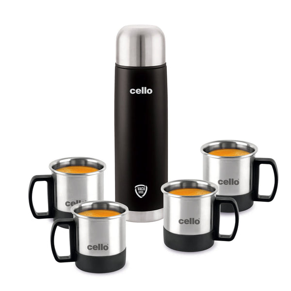 Duro Imperial Vacusteel Flask with Mugs Gift Set, 5 Pieces
