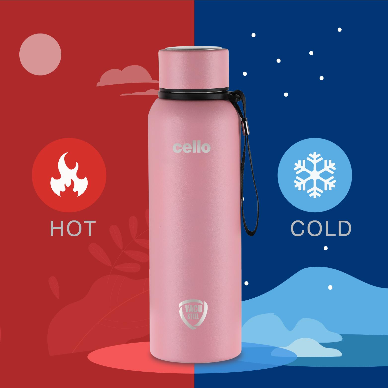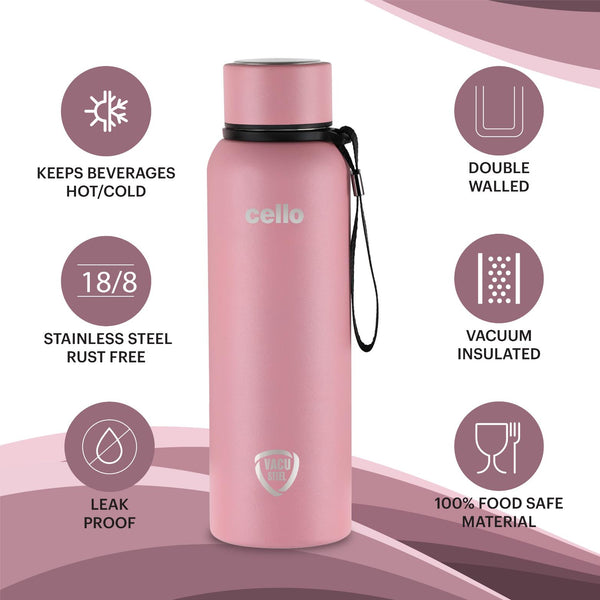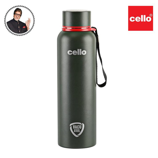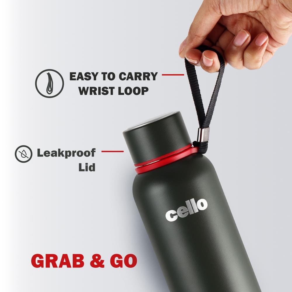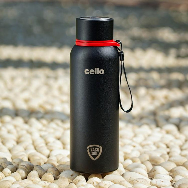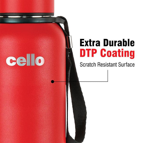 Duro Kent Flask is a Vacusteel Water Bottle from Cello's adventurous Duro Series of Tuff Steel insulated bottles. Designed for those with an adventurous spirit, this flask in sleek black, cool blue, vibrant green, and bold red is the perfect companion for treks, hikes, cycling, gym sessions, school, or office days. Engineered with new and advanced DTP coating, the bottle's vibrant color remains durable, resisting fading or scratching even with daily use. With double-wall insulation and Vacusteel Technology featuring a copper-coated interior, it keeps hot water piping hot and cold water refreshingly cold for extended periods. This leak-proof and odor-free bottle ensures your beverages are stored without oxidation or unpleasant smells, all while remaining rust-free. With a convenient loop for easy carrying, the Duro Kent Flask offers both style and functionality for your active lifestyle. Capacity: 550ml | 750ml | 900ml. Colour - Black, Military Green, Bold Red and Sky Blue