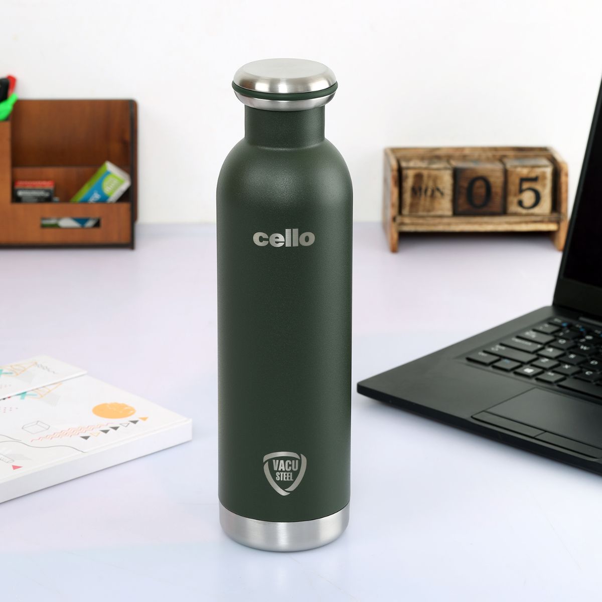 Introducing the Duro Mac Flask, Vacusteel Water Bottle - a true companion for adventurers and everyday enthusiasts alike. Crafted with precision in mind, this stainless steel flask boasts a rugged, double-walled design, ensuring your beverages stay hot or cold for extended periods, making it perfect for treks, workouts, or the daily grind. The advanced DTP coating ensures the bottle retains its vibrant color and resists scratches, allowing you to maintain an active lifestyle without worrying about wear and tear. With pure taste preservation, a leak-proof lid, and an array of attractive designs and colors, the Duro Mac Flask is your go-to choice for versatile, reliable hydration wherever you go. Stay refreshed, stay stylish, and stay on the move with Cello's Duro Series.