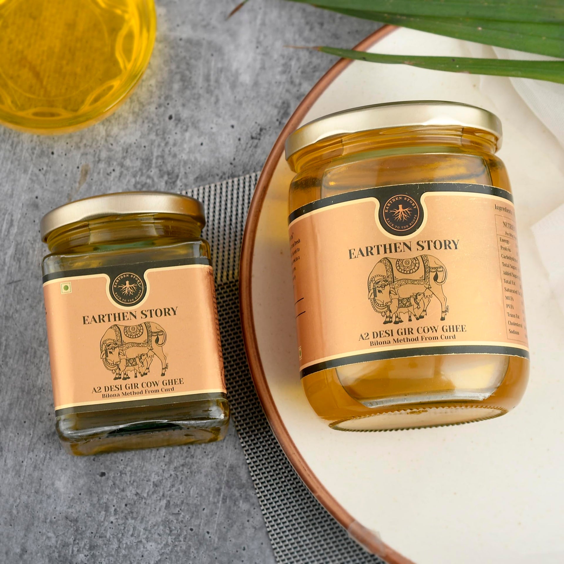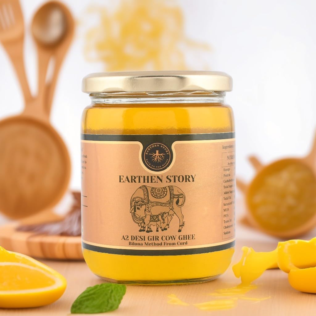 Earthen Story A2 Ghee from Gir Cow 500ml | A2 cow ghee bilona method from curd | 100% Pure, Natural & Healthy | A2 gir cow ghee in Glass Jar | Lab Tested