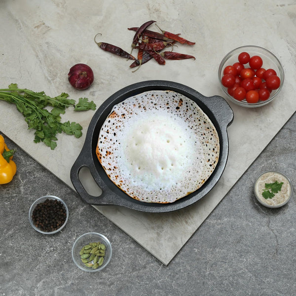 EUGOR from House of TheHealthyCliQ Cast Iron Appa Chatti/Appam Pan/Appam Patra/kallu Pre- Seasoned with Organic Cooking Oil (APPAM) - Black