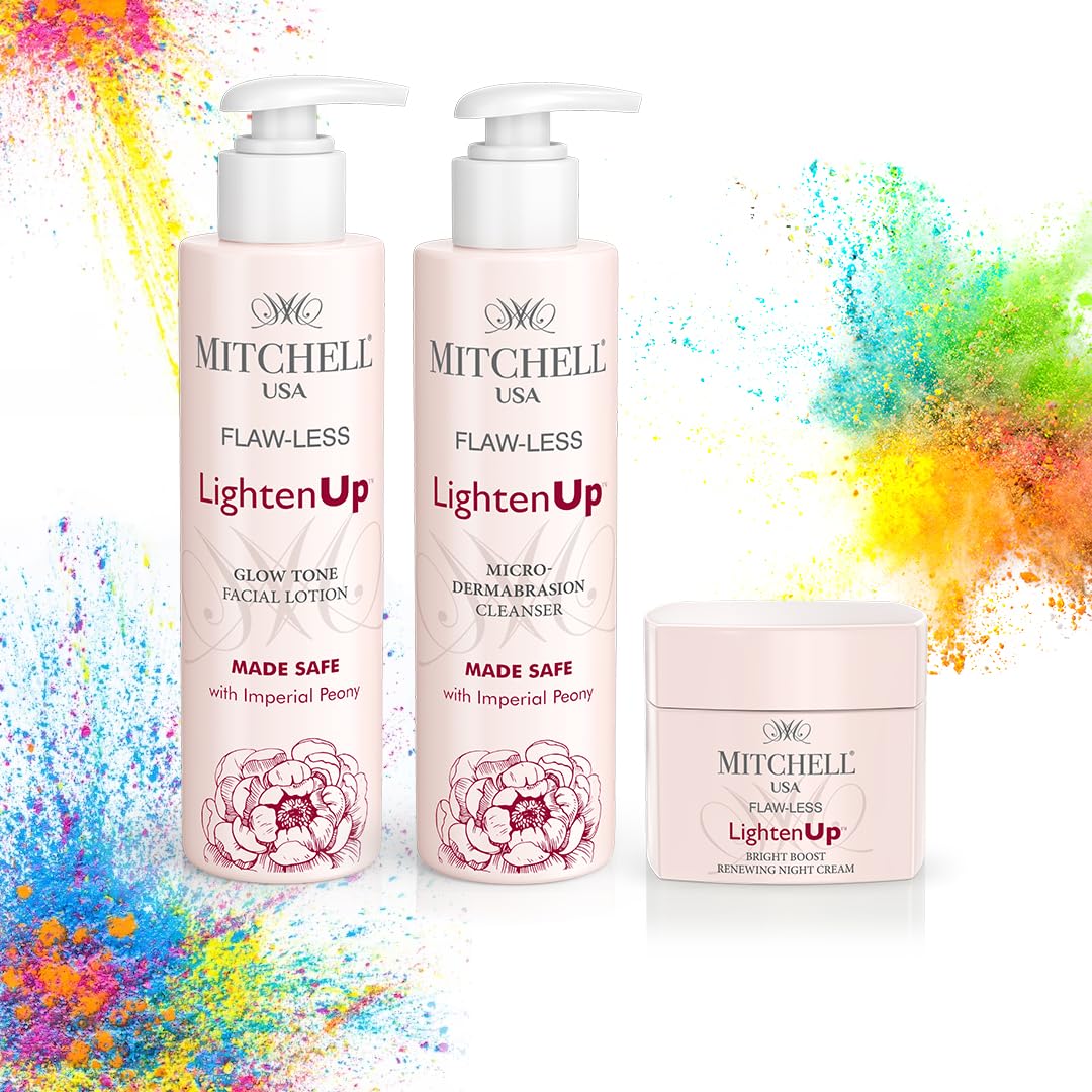 Exclusive Holi Skincare Combo: Mitchell USA LightenUp Cleanser, Glow Tone Lotion, Night Cream - Radiant Skin Regimen