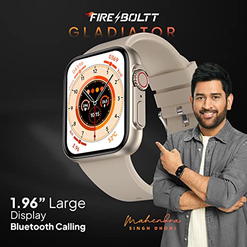 Fire-Boltt Gladiator 1.96" Biggest Display Smart Watch with Bluetooth Calling, Voice Assistant &123 Sports Modes, 8 Unique UI Interactions, SpO2, 24/7 Heart Rate Tracking (Light Gold)
