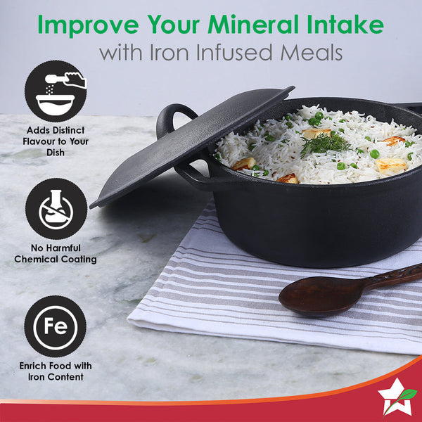 Forza 25 cm Cast-Iron Casserole with Lid | Pre-Seasoned Cookware | Induction Friendly | 4.7 L | 3.8 mm with Lifetime Exchange Warranty