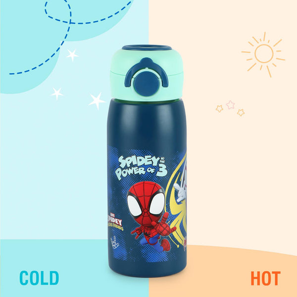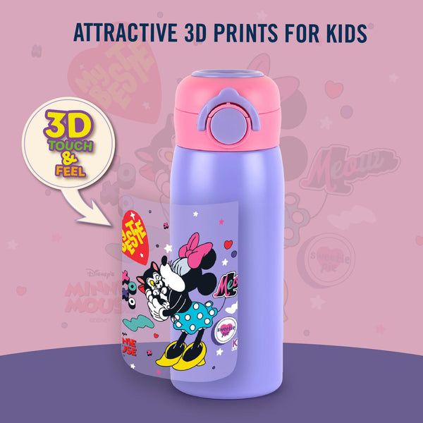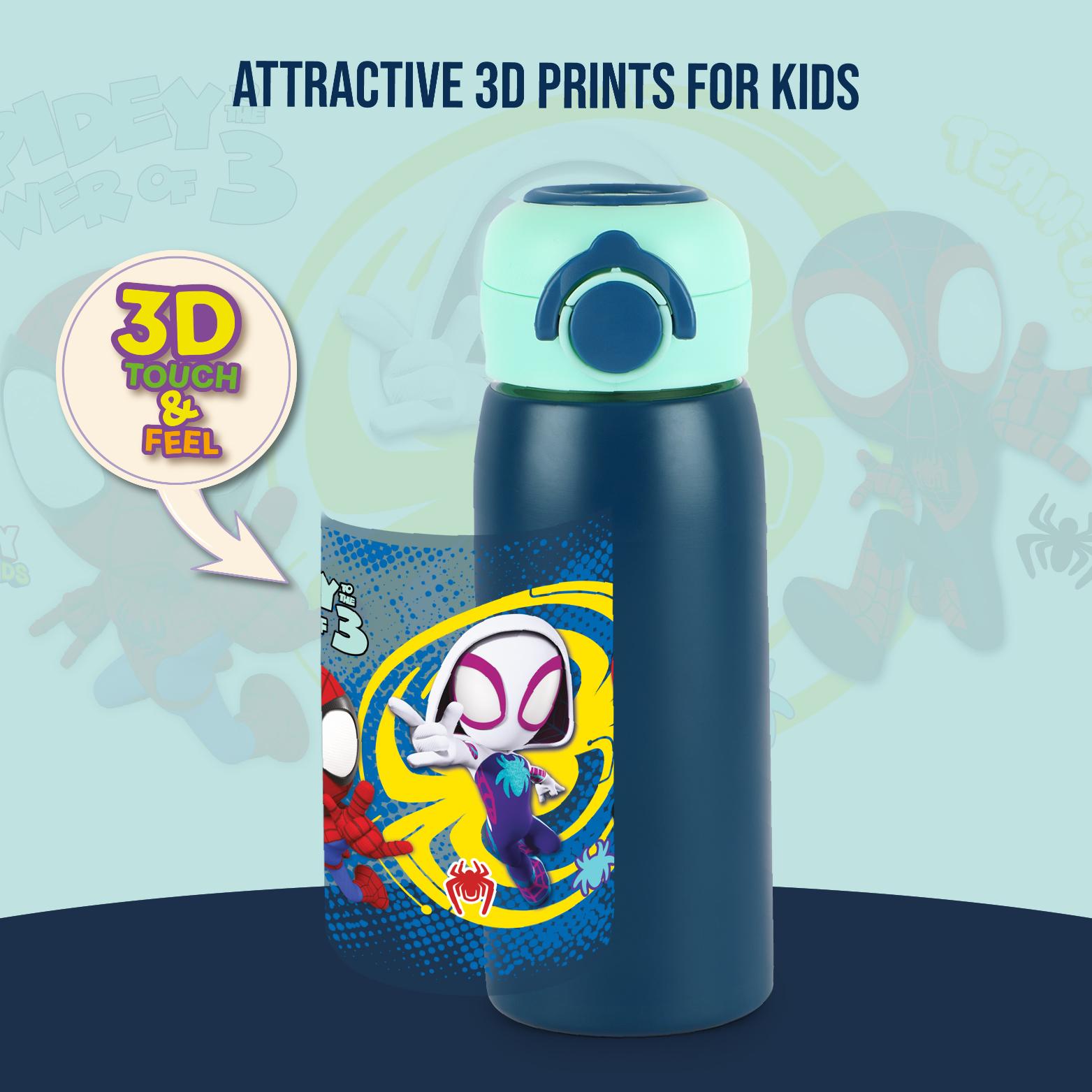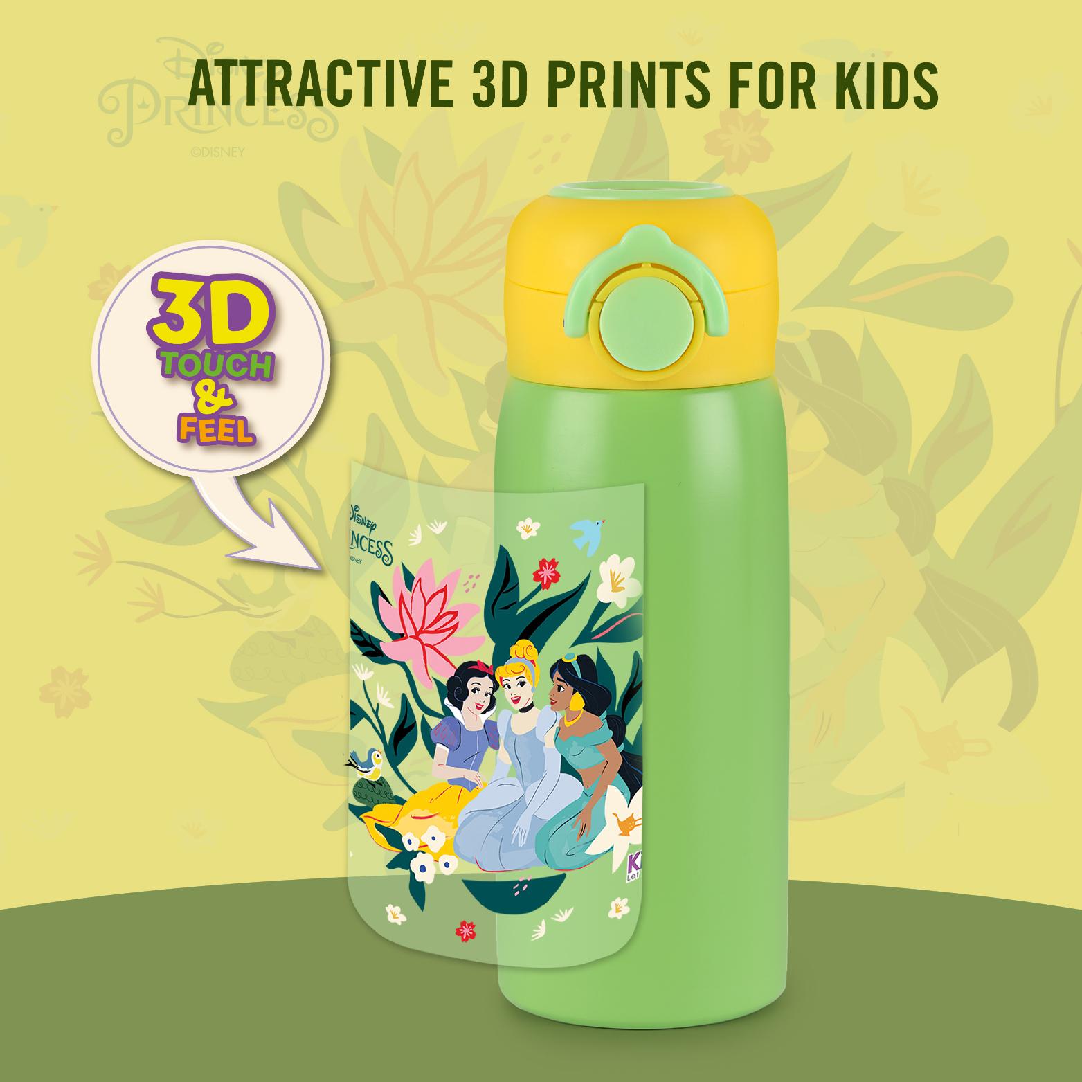 The Cello Kidzbee Giggle Thermosteel Kids Flask 380 ml is a stainless steel bottle designed specifically for school and picnics. Its standout feature is the captivating 3D design, featuring beloved Disney and Marvel characters that appeal to children. Beyond aesthetics, this Kids Flask excels in maintaining beverage temperature, keeping drinks hot or cold for longer hours. Its user-friendly design includes a convenient push-button lid for effortless access and an interlocking mechanism that prevents unintended spills, ensuring a mess-free experience. Moreover, it boasts an odorless construction, preserving beverages' taste integrity without lingering smells. The Cello Kidzbee Giggle Thermosteel Kids Flask not only meets practical needs but also enhances the drinking experience with its engaging design and reliable performance, making it a perfect companion for active kids and their daily adventures.