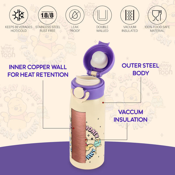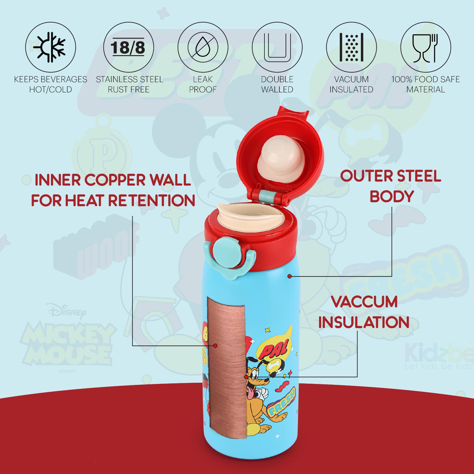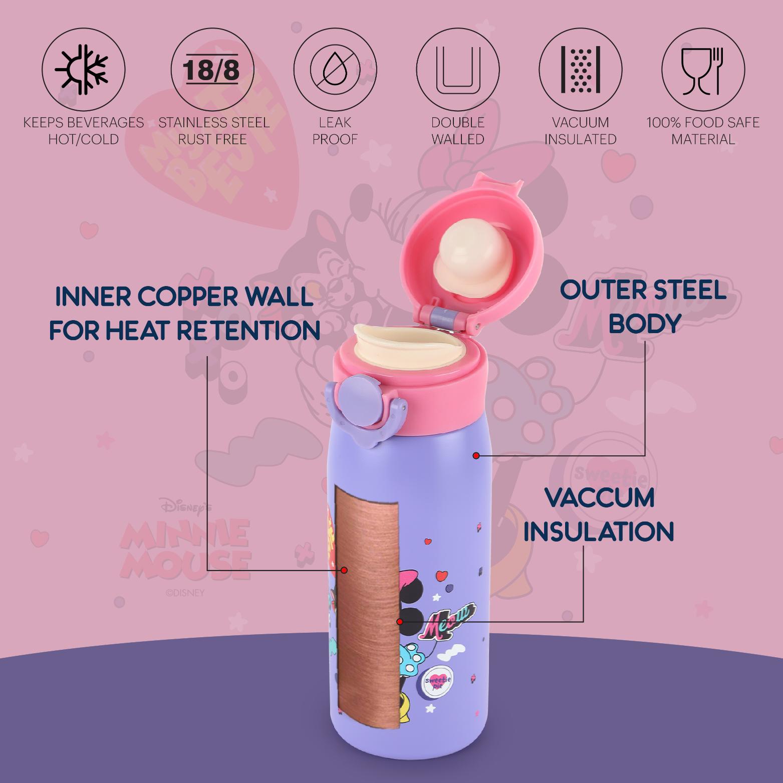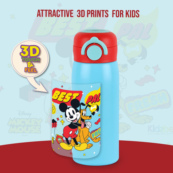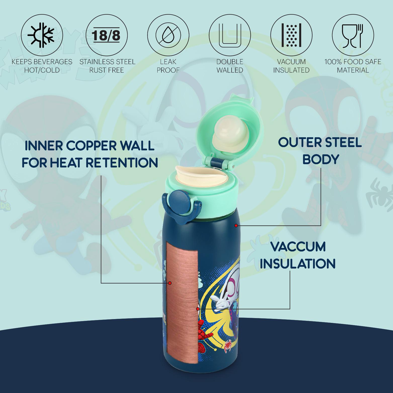 The Cello Kidzbee Giggle Thermosteel Kids Flask 380 ml is a stainless steel bottle designed specifically for school and picnics. Its standout feature is the captivating 3D design, featuring beloved Disney and Marvel characters that appeal to children. Beyond aesthetics, this Kids Flask excels in maintaining beverage temperature, keeping drinks hot or cold for longer hours. Its user-friendly design includes a convenient push-button lid for effortless access and an interlocking mechanism that prevents unintended spills, ensuring a mess-free experience. Moreover, it boasts an odorless construction, preserving beverages' taste integrity without lingering smells. The Cello Kidzbee Giggle Thermosteel Kids Flask not only meets practical needs but also enhances the drinking experience with its engaging design and reliable performance, making it a perfect companion for active kids and their daily adventures.