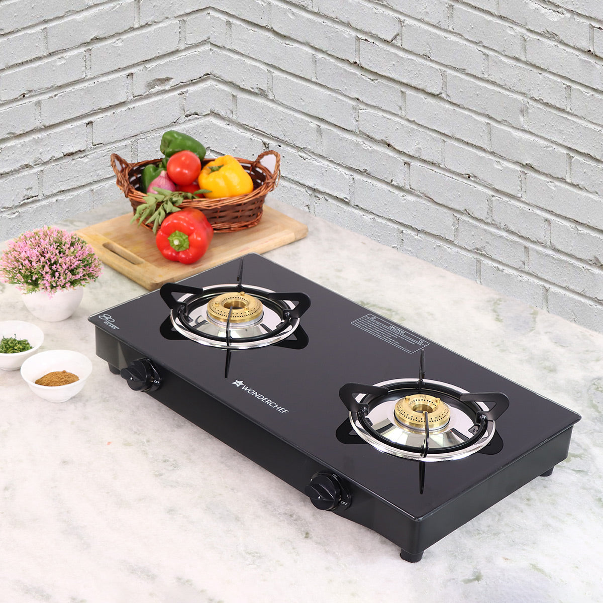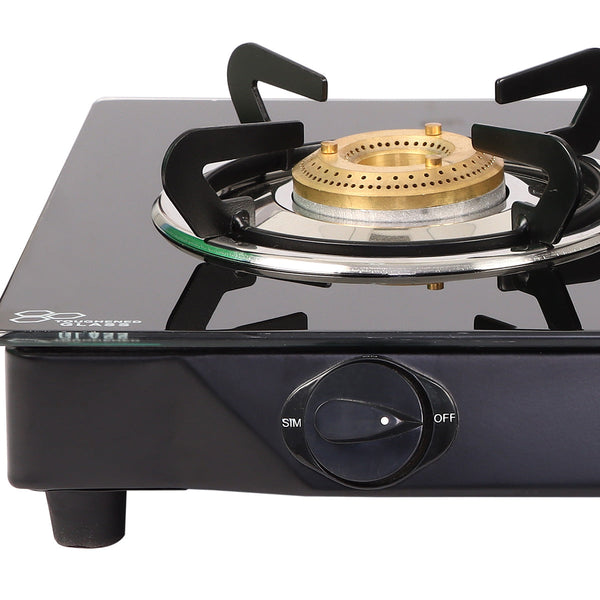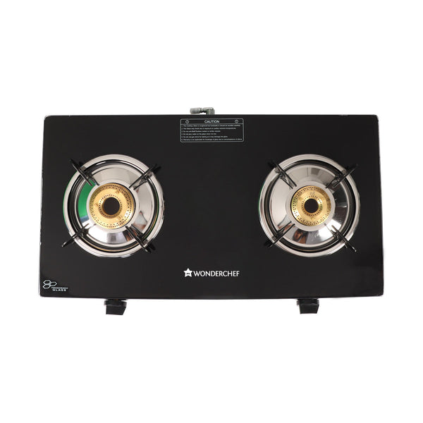Glory 2 Burner Glass Cooktop, Stainless Steel Drip Tray, Black Toughened Glass with 2 Year Warranty, Manual Ignition Gas Stove