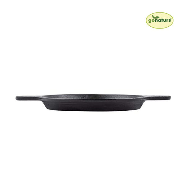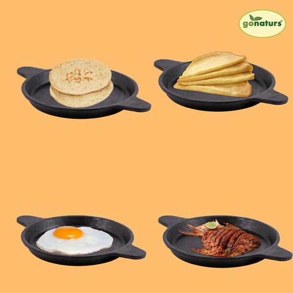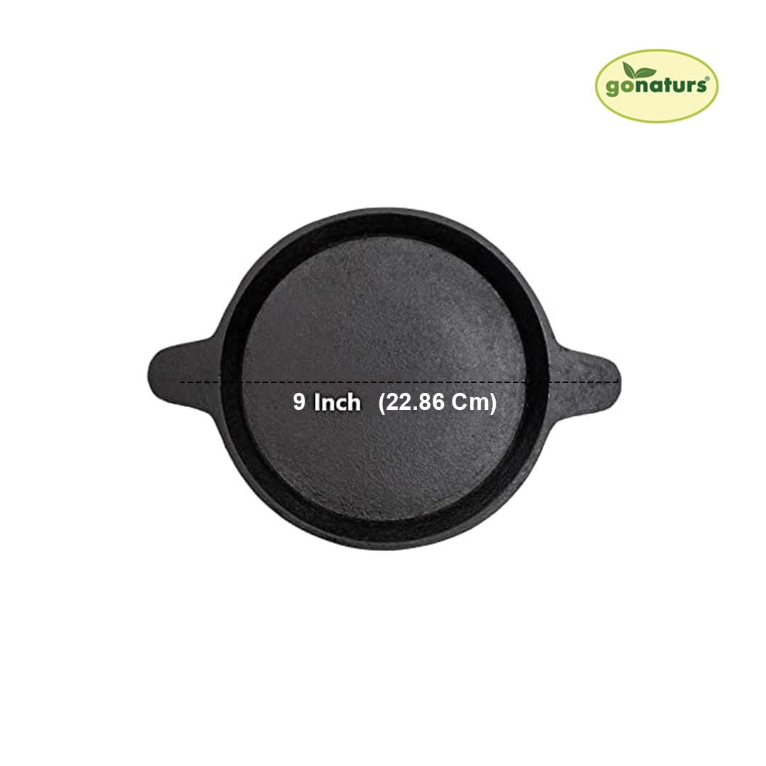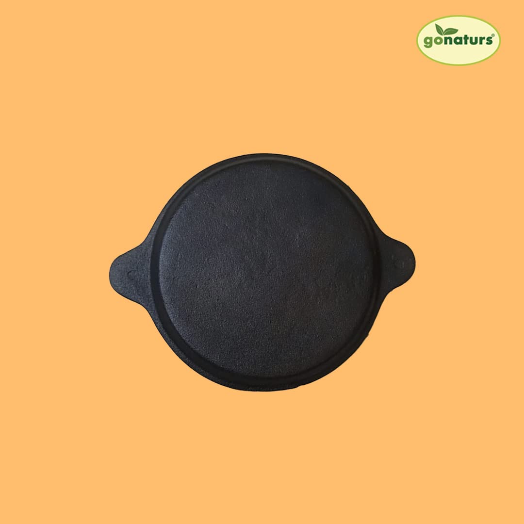 - Gonaturs cast iron dosa tawa is 100% Iron. Food grade, vegetable oil. Completely Toxin- Free. No enamel nor coating used to enjoy a chemical free, tasty food. few times before cooking.