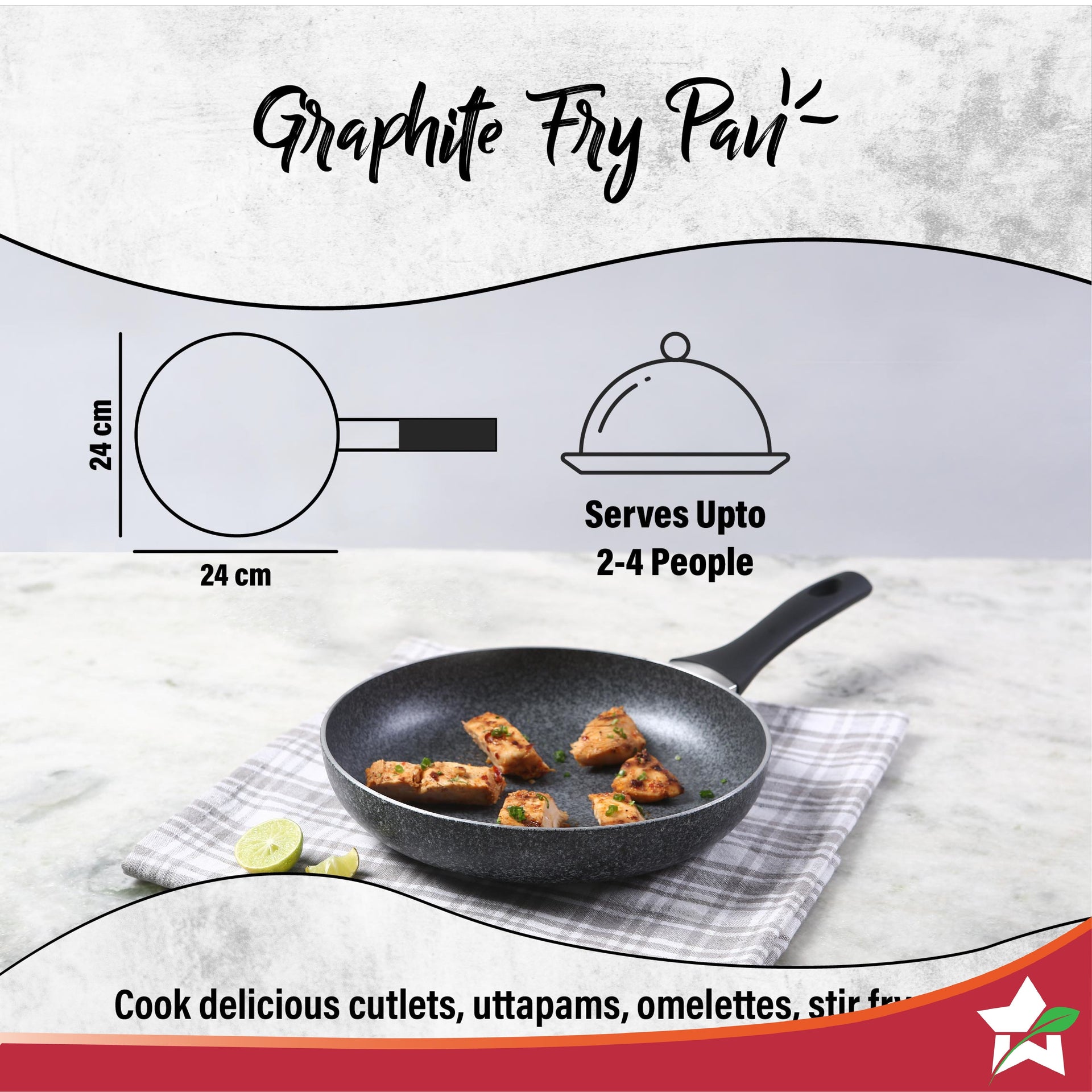 Use the fry pan to prepare delicious cutlets, omelets, pasta, stir fry veggies and more. Accentuate the beauty of your kitchen with Graphite pan!