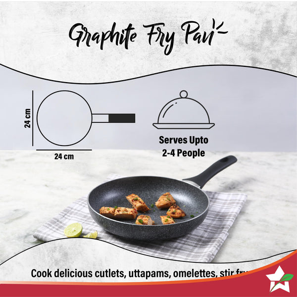 Wonderchef Graphite Fry Pan works like a charm! The beautiful stone finish and ravishing deep grey shade will surely add beauty to your kitchen. One of the most versatile cookware in your kitchen, this fry pan can be used to prepare delicious cutlets, omelets, pasta, stir fry veggies and more. Its premium healthy non-stick coating enables oil - free cooking without any compromise on taste! Get stellar performance every time you cook with Graphite fry pan from Wonderchef.