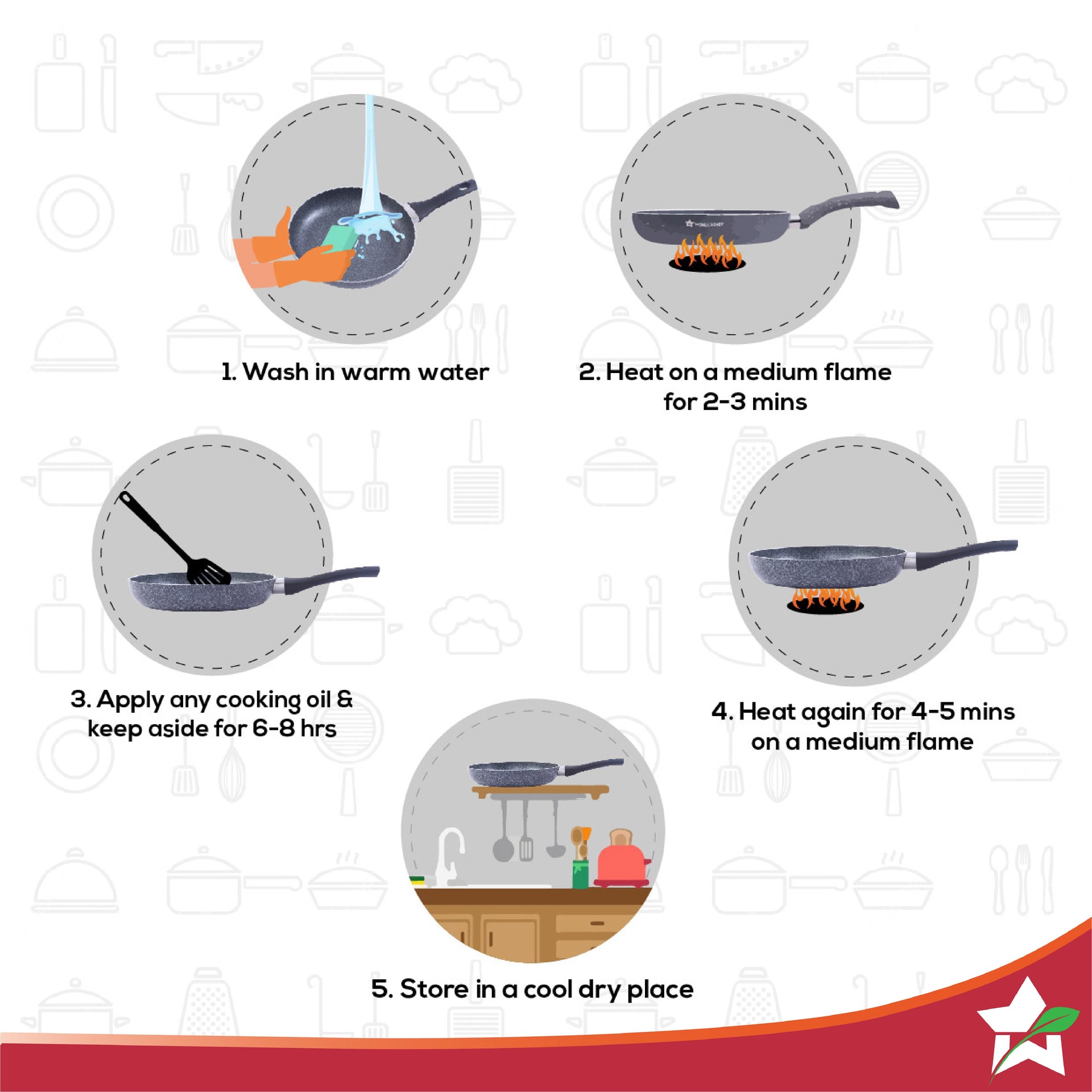 1.For added longevity, pre-heat on low flame for 1 minute only. Cook on Low to Medium flame for best performance.