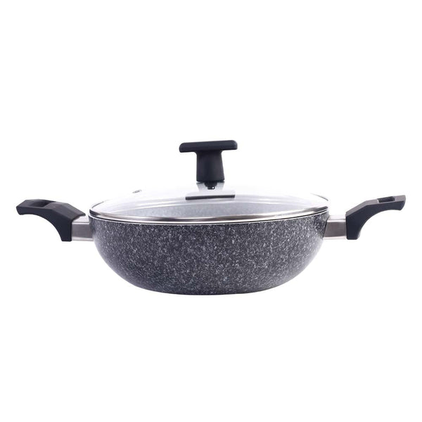 Enjoy the pleasant cooking experience with the all new Graphite non-stick cookware range. Featuring a beautiful stone finish with German non-stick coating from Greblon; the fry pan, grill pan, kadhai, dosa tawa and casserole will add beauty to your kitchen. Graphite range is made from pure grade virgin aluminium which is 9 times beer conductor of heat than steel. Now you can freely use a metal spoon without the fear of scratches on the coating. The so-touch handles provide a comfortable grip. Time to cook healthy, stay fit and get stellar performance everytime you cook with Graphite range of non-stick cookware by Wonderchef.