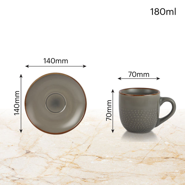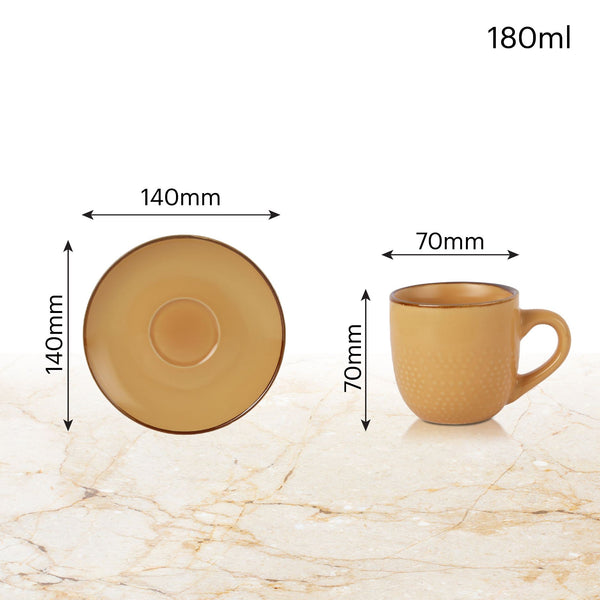 The Hampshire 6 Pieces Ceramic Cup & Saucer set offers a delightful blend of elegance and functionality. Crafted with fine ceramic material, this set is designed to enhance your tea or coffee-drinking experience. The classic design and smooth finish make it suitable for both everyday use and special occasions. Each cup and saucer is meticulously crafted to ensure durability and aesthetic appeal. Whether you're enjoying a quiet morning alone or hosting a gathering with friends, this set adds a touch of sophistication to any table setting.