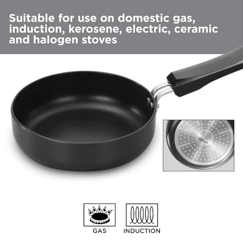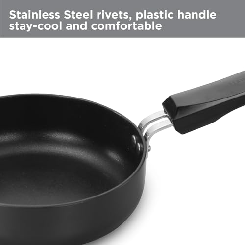 Details: Hawkins Futura Frying Pan is crafted with precision. This frying pan features a PFOA Free Non-stick coating seamlessly bonded to tough Hard Anodised Aluminium, ensuring durability and superior cooking performance. Renowned for its heavy gauge construction and impeccable balance, the Futura Frying Pan makes cooking effortless and results consistently delicious. Whether you prefer cooking with minimal oil or no butter at all, this frying pan delivers outstanding performance without compromising on taste. Experience comfort and convenience like never before with the stay-cool plastic handle, ensuring a secure grip and comfortable maneuverability. Versatility meets compatibility with this Frying Pan, suitable for use on a wide range of stovetops including gas, induction, kerosene, electric, ceramic, and halogen. From traditional delights like Akuri and Alu Tikki to international favorites like French Toast and Pancakes, this frying pan caters to a myriad of culinary creations.