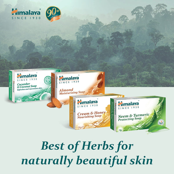 Details: Protecting Neem and Turmeric Soap: Protection guaranteed. What it does: Himalaya's Protecting Neem and Turmeric Soap blends together all the goodness of naturally derived ingredients to keep your skin protected at all times. The extracts of Neem, Lemon and Turmeric, which contain antibacterial and antifungal properties, protect your skin from harsh environmental conditions. Key ingredients: Neem Oil and Neem leaves are excellent skin care ingredients. The oil relieves dry skin and soothes itchiness, redness and irritation. It also improves general skin health and immunity, combating bacterial infections such as acne, boils and ulcers. Lemon has antibacterial, astringent and cell-regenerative properties. It refreshes the skin and improves skin tone. It has an overall soothing and relaxing effect and is an effective deodorant. Lemon is an effective cleanser, removing skin debris and impurities, leaving your skin supple, smooth and fresh. Turmeric has strong anti-inflammatory properties, which soothe your skin gently. The herb helps to even out your skin tone and complexion.It also helps to retain the skin's elasticity and makes it more supple.