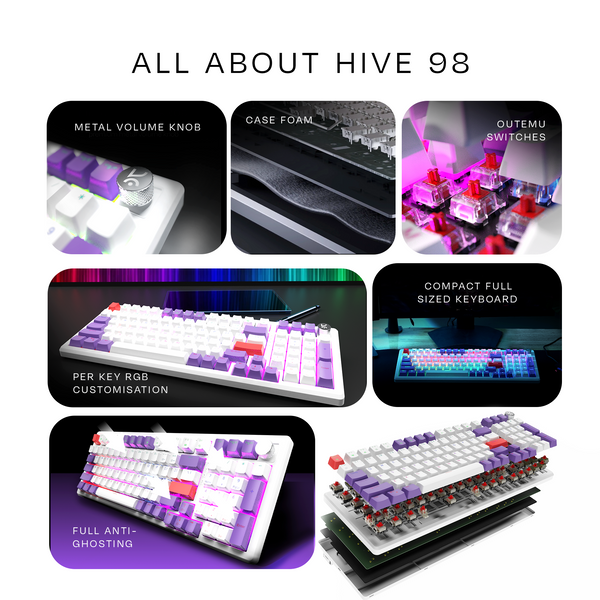 Hive Full-Size White - Purple Wired Gaming Keyboard