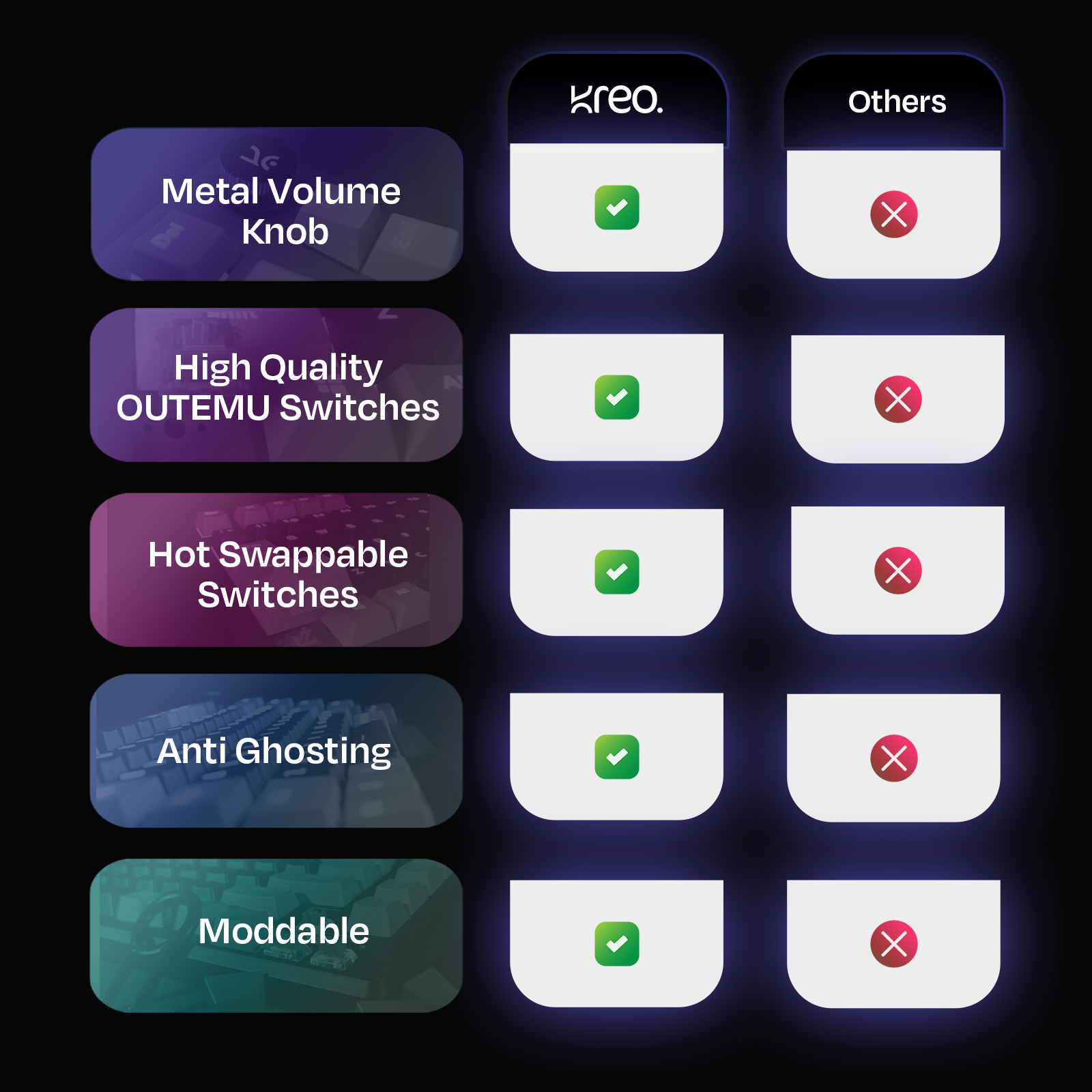- Loooong Lifespan : 60 million Keystrokes!!!