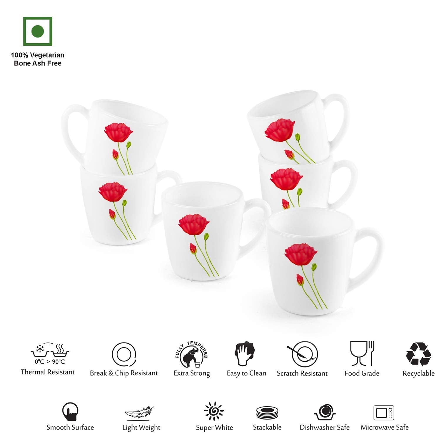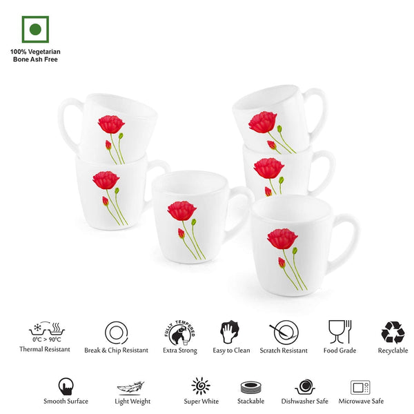 Product Description Cello Imperial Ricca Mug Red Poppy is a set of 6 elegantly designed 100ml mugs that seamlessly blend aesthetic charm with cutting-edge technology. Crafted with precision in India using state-of-the-art German technology and adhering to stringent European standards, these mugs are not just a visual delight but also a testament to quality.