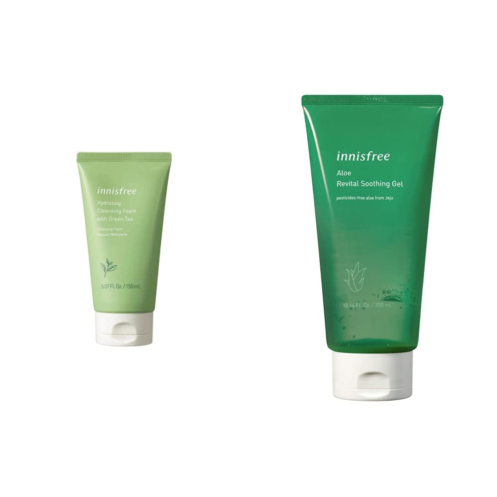 - Innisfree Green Tea Foam CleanserRefreshing and hydrating cleansing foam with Jeju green tea extract while it whisks away dirt and impurities.Innisfree Aloe Revital Soothing GelThis soothing gel for face and body is formulated with Jeju aloe extract, hydrates tired-looking skin with moisture for a healthy look.