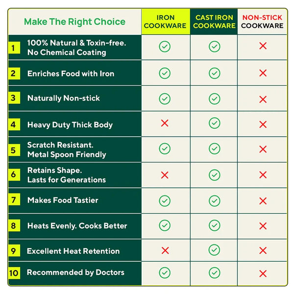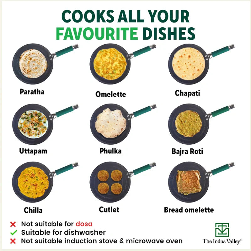 🌿100% NATURAL & TOXIN FREE: The Indus Valley’s Pure Sheet Iron Concave Roti/Chappati Tawa is made from 100% pure iron. Thus, this iron roti tawa with handle is food-safe and toxin-free. It is a healthier alternative to non-stick tawa that is generally covered with harmful coating. Do you wish to buy tawa online that is safe for your and your family’s health, then get this amazing tawa from The Indus Valley!