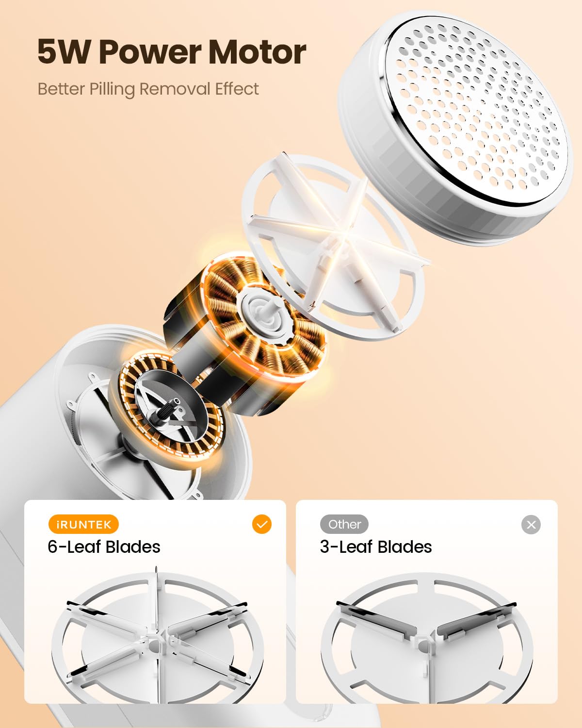 - 【Efficient and Innovation 】Lint remover is equipped with powerful 5W 7200-RPM high-speed motor.This bobble remover for clothes has improved rotary dual 6-leaf stainless steel sharp blades and extra larger shaving head, which increase work efficiency by 50%. For wider angle to removal from all fabrics with high-speed rotary in no time.