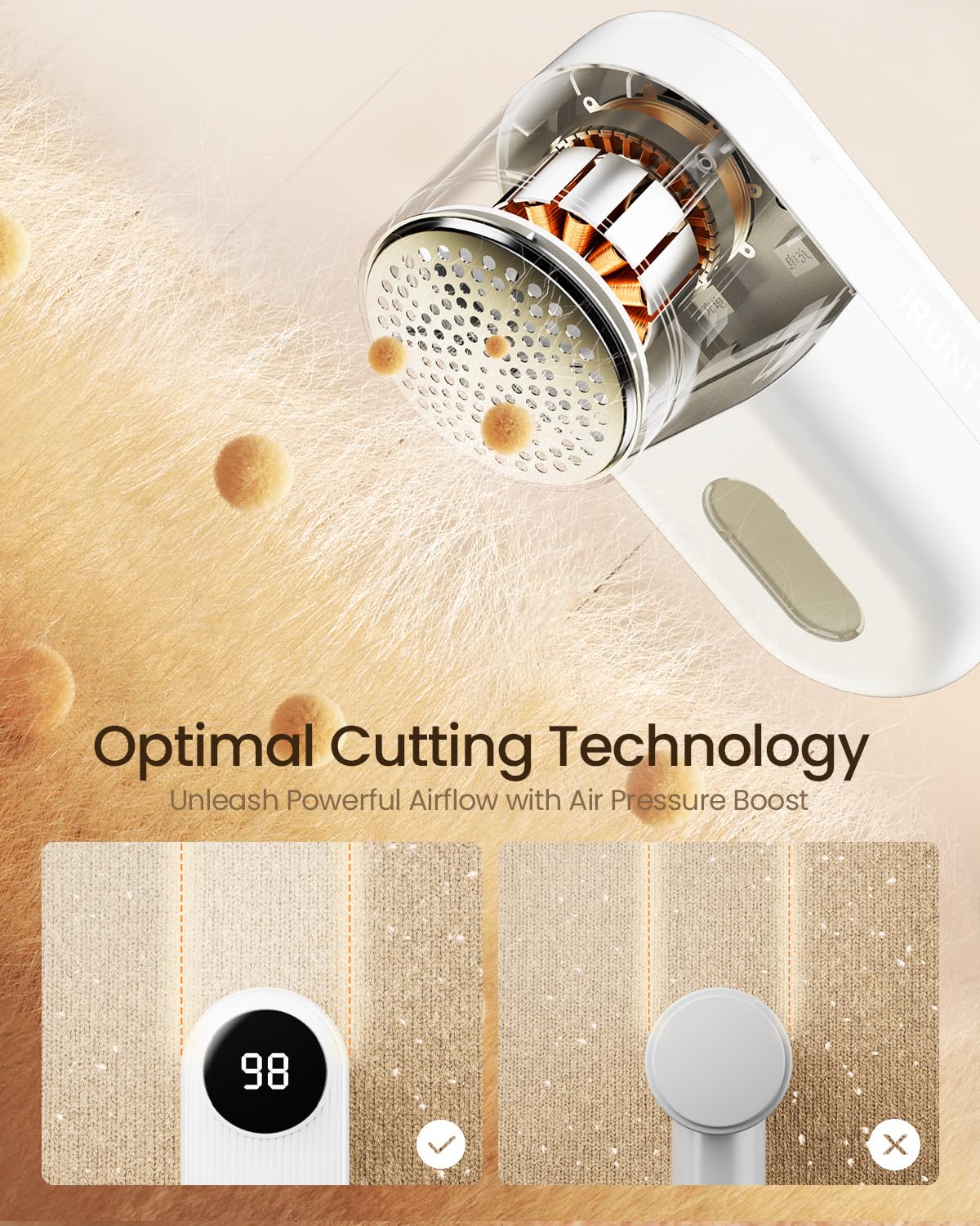 - 【User-Friendly Designs】Our fabric shaver with thickened stainless steel blade mesh and three different sizes of holes to flexibly fit your clothes when trimming, won't cut your clothes.The lint shaver for clothing will turn off whenever the mesh cover is loose or the fuzz bin is installed incorrectly to avoid cuts and protect you and your family. while an ergonomic, easy-to-grip handle gives a comfortable grip.