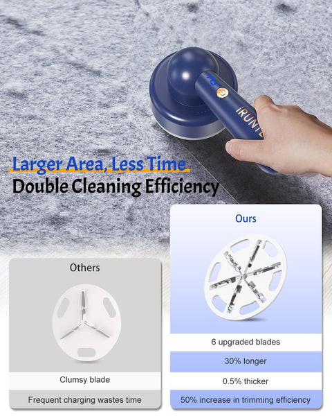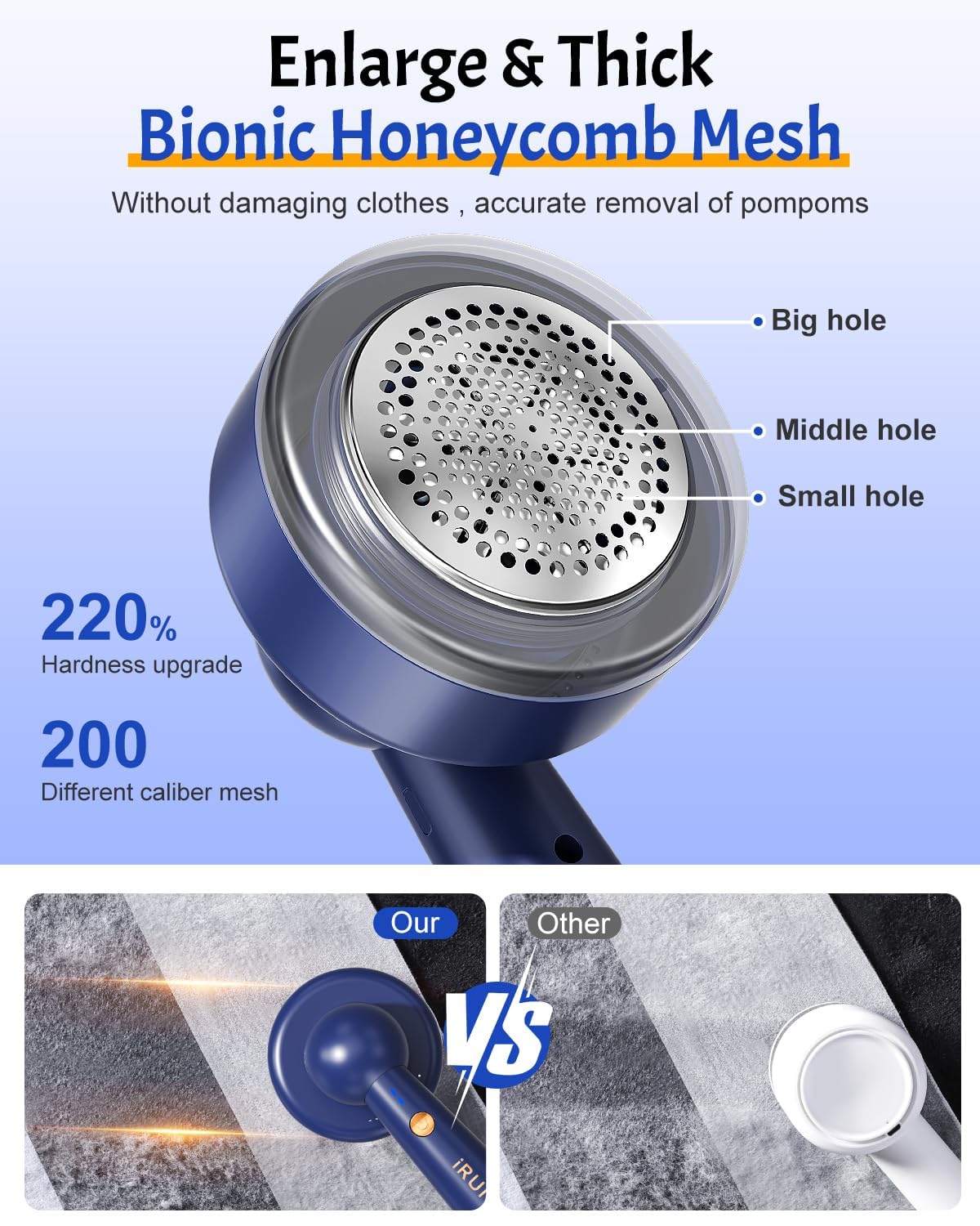 - ๐งถ๐๐ผ๐๐ฏ๐น๐ฒ ๐๐น๐ฒ๐ฎ๐ป๐ถ๐ป๐ด ๐๐ณ๐ณ๐ถ๐ฐ๐ถ๐ฒ๐ป๐ฐ๐: Lint shaver features an upgraded stainless steel 6-leaf blade and 85000RPM high-speed motor, resulting in double the cleaning efficiency compared to other 3-leaf blade shavers. The stainless steel mesh cover has 3 different size hole diameters to accommodate different sizes of lint balls, ensuring quick and residue-free cleaning.