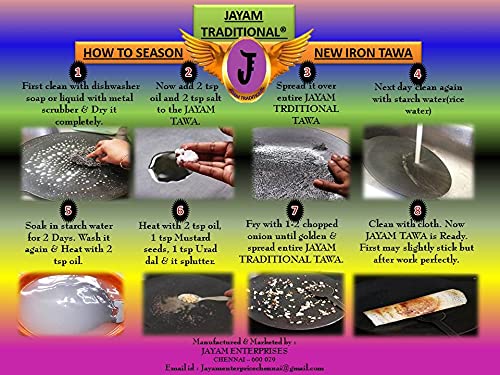 Jayam Traditional Iron Flat DOSA/CHAPATI TAWA/DOSA KALLU 1.5KG with DOSA Turner 26 cm Diameter (Black)