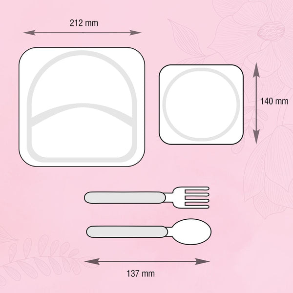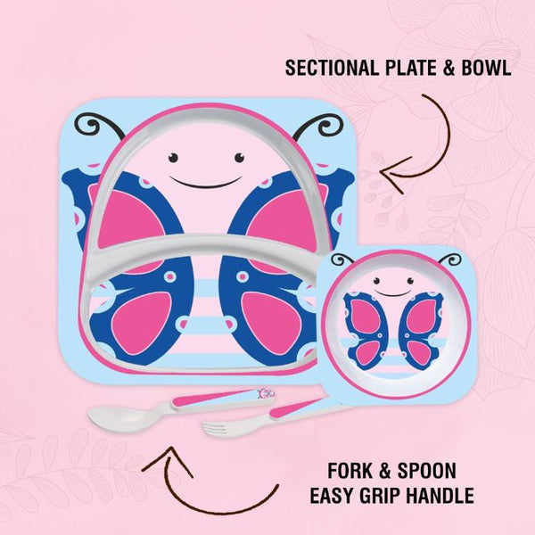 Introducing the enchanting Kids Meal Set - a delightful dining experience for your little ones! Crafted with a captivating butterfly design, this meal set is tailored for budding self-feeders. The plate's elevated design ensures stability on any surface, preventing spills. Crafted from premium, child-safe melamine, Cello's Kids Meal Set guarantees hygiene and durability. Feather-light and adorned with charming animal prints, it instantly becomes your child's cherished companion. Promote independent eating with its kid-friendly size and vibrant animal motifs, turning mealtime into an adventure. Perfect for gifting, this set includes plates, spoon, kids' bowls, and fork, all featuring unique patterns that your kids will adore
